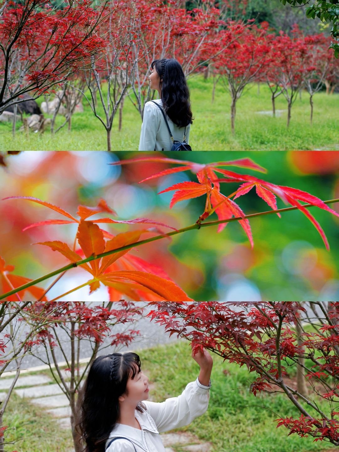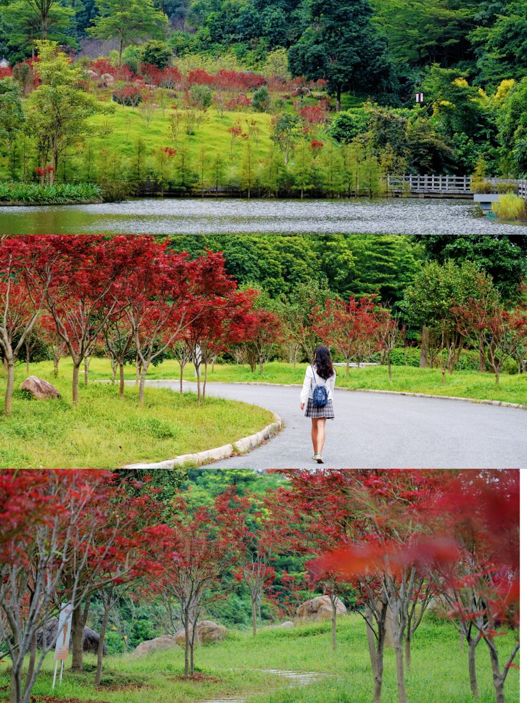 用一张图形容秋天 “才感盛夏,忽而立秋 一叶知秋,一夜至秋” 刚步入10月的广州 因为一场台风忽然就有了秋天的凉意 帽峰山这片枫叶林也率先带来了秋的气息 虽然达不到漫山遍野的规模 可也有了赏秋的氛围 - 拍照小Tips: ①、因为台风将至,天气虽然不是太好,可胜在人少。再加上凉风习习,出来爬山游玩很是舒服 ②、浅色纯色衣裙,在色彩斑斓的枫叶林间会更突出 ③、停车场走到红枫园的环湖木栈道也很出片,运气好还能偶遇湖中天鹅 - 🍁帽峰山森林公园·红枫园 🚇地铁14号线太和站E出口转乘,公交758路到帽峰山总站,步行山路约半小时 🚙自驾定位帽峰山天湖停车场,下车步行2-3分钟 🎟成人10/人,车10/辆