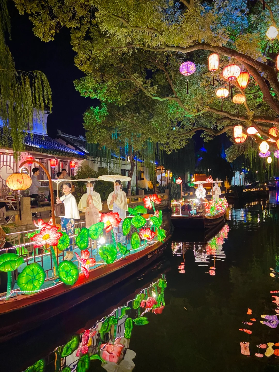 8⃣️周庄的夜景非常美,华灯初上,有烂漫的花巷、沉浸式的光影秀,一定要看夜景。
