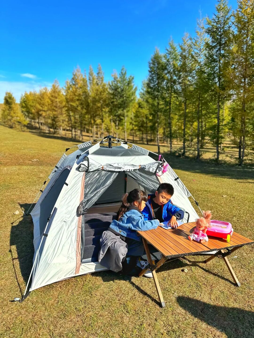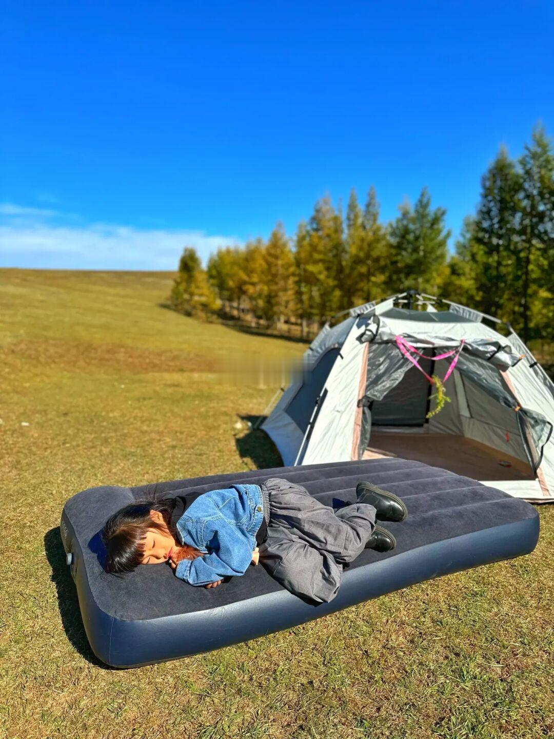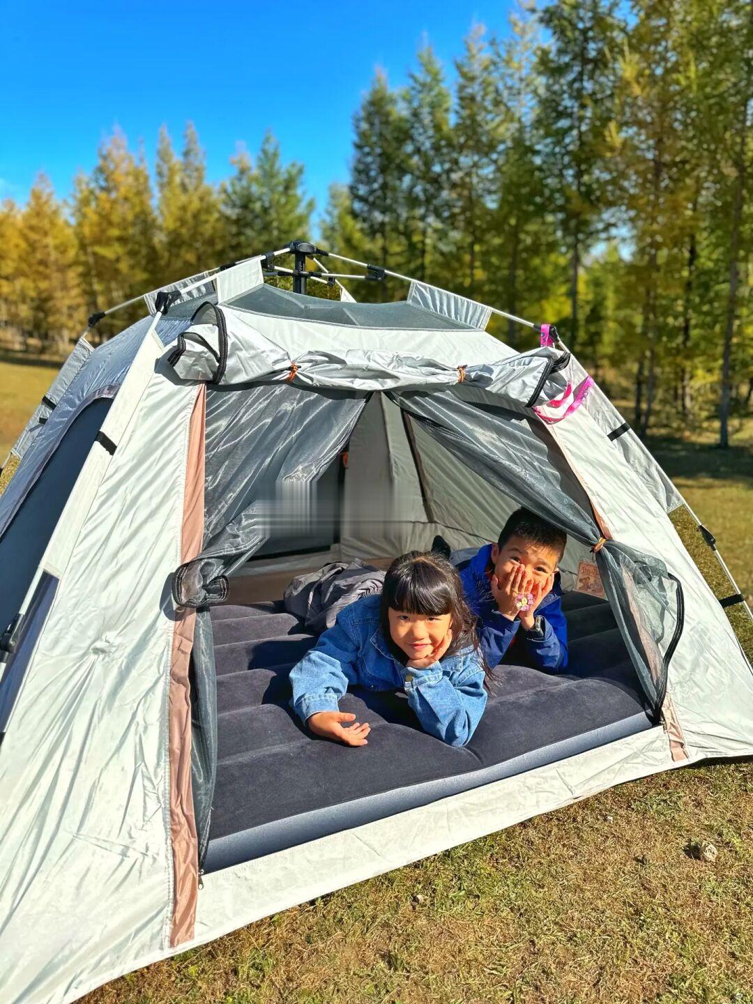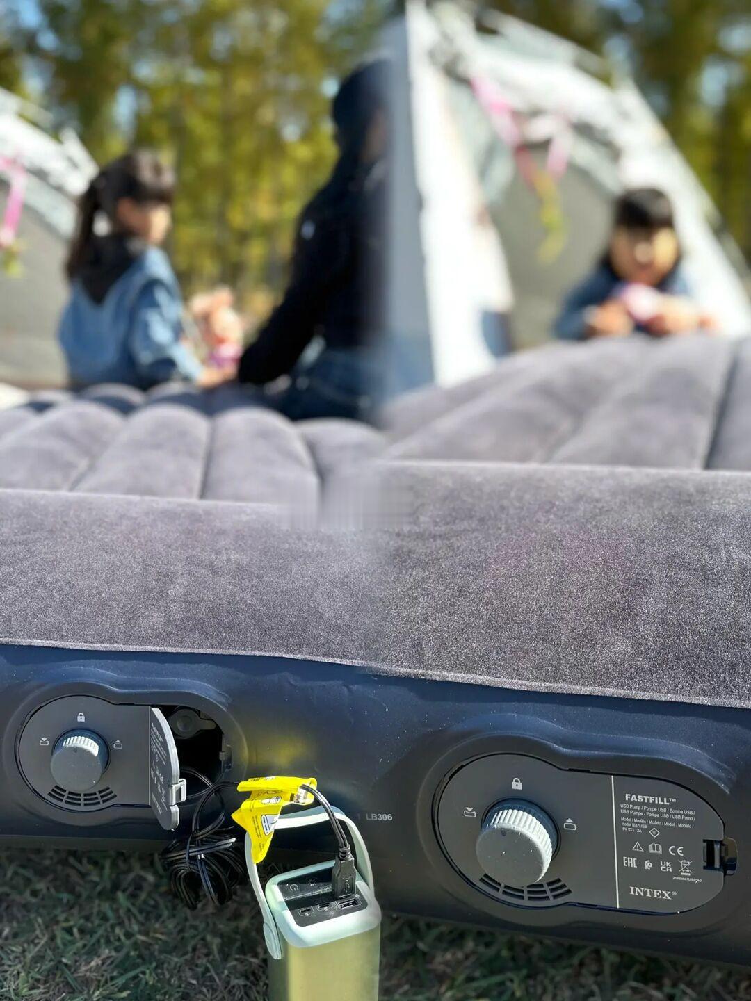 这次两个娃很勇敢自己住帐篷🏕️,用的INTEX的充气床,充气放气都是USB接口一个充电宝就搞定了👍,三天没有补气,很不错