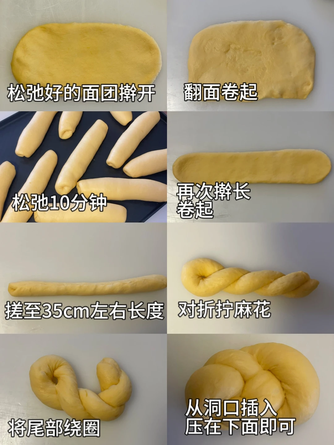 📎面团打好应该不粘手,整形可撒一点手粉防粘