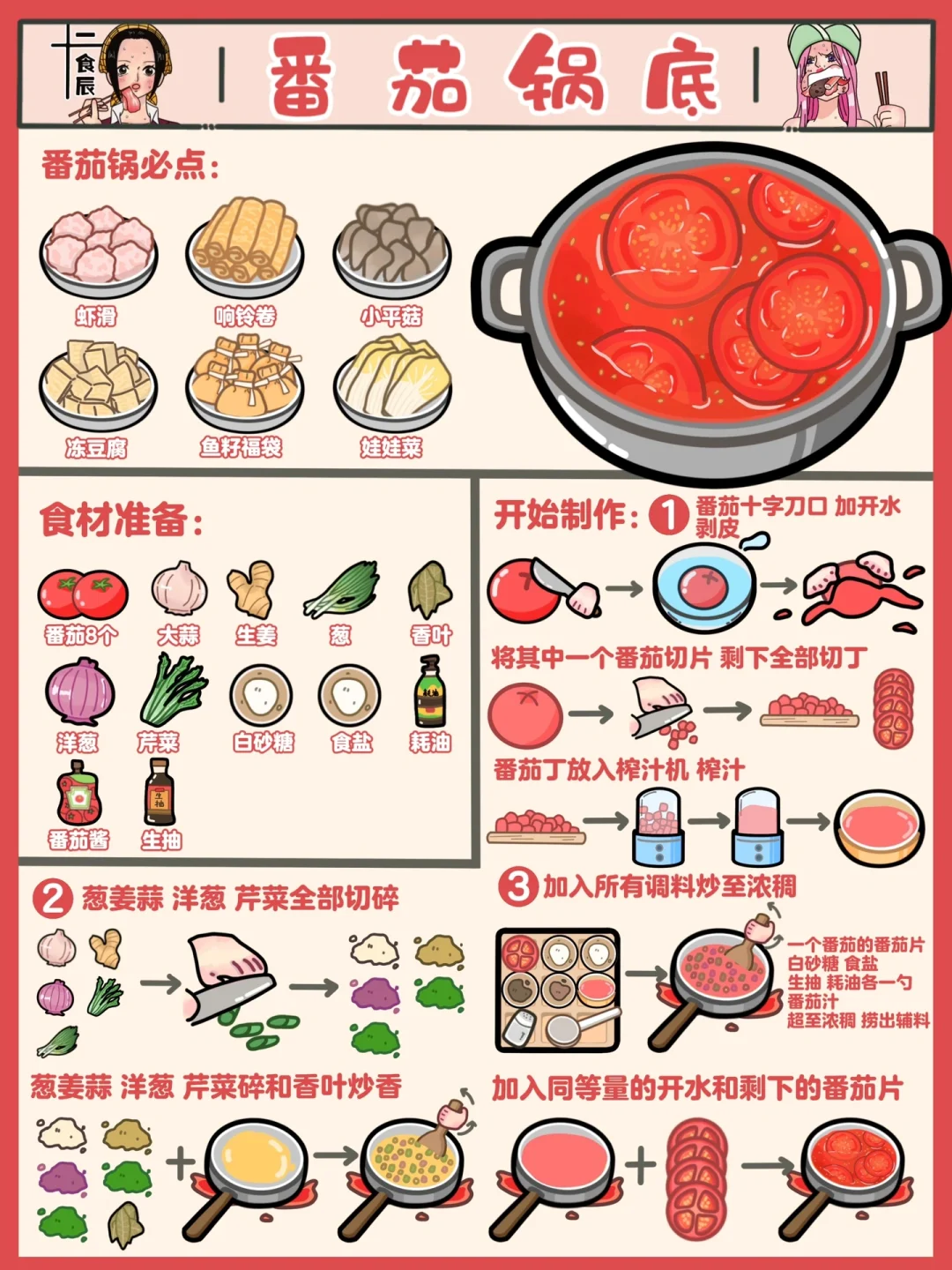 今日份四种火锅锅底制作🍜来喽!爱吃火锅🍲的有福啦,四种锅底,满足你的不同味蕾‼️麻辣锅底暴汗进爽 番茄锅底汤汁浓郁 菌菇锅底鲜香四溢 浓汤锅底营养美味🎉