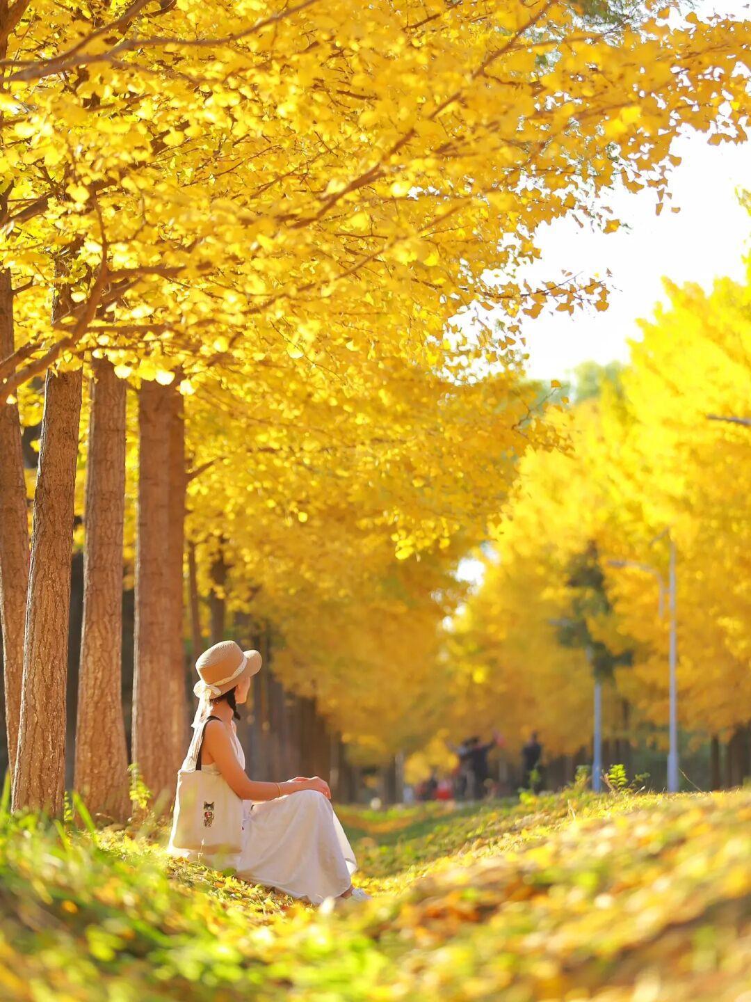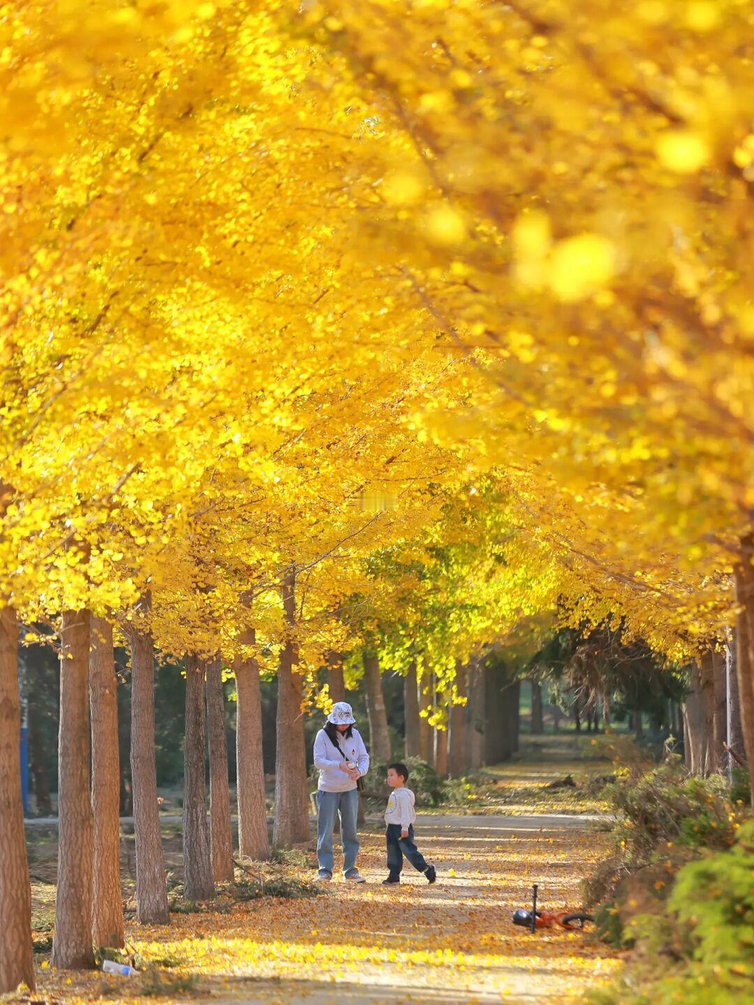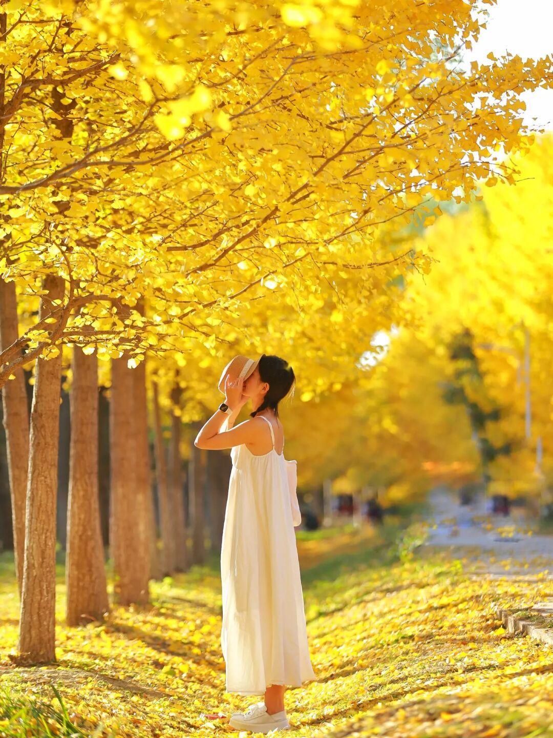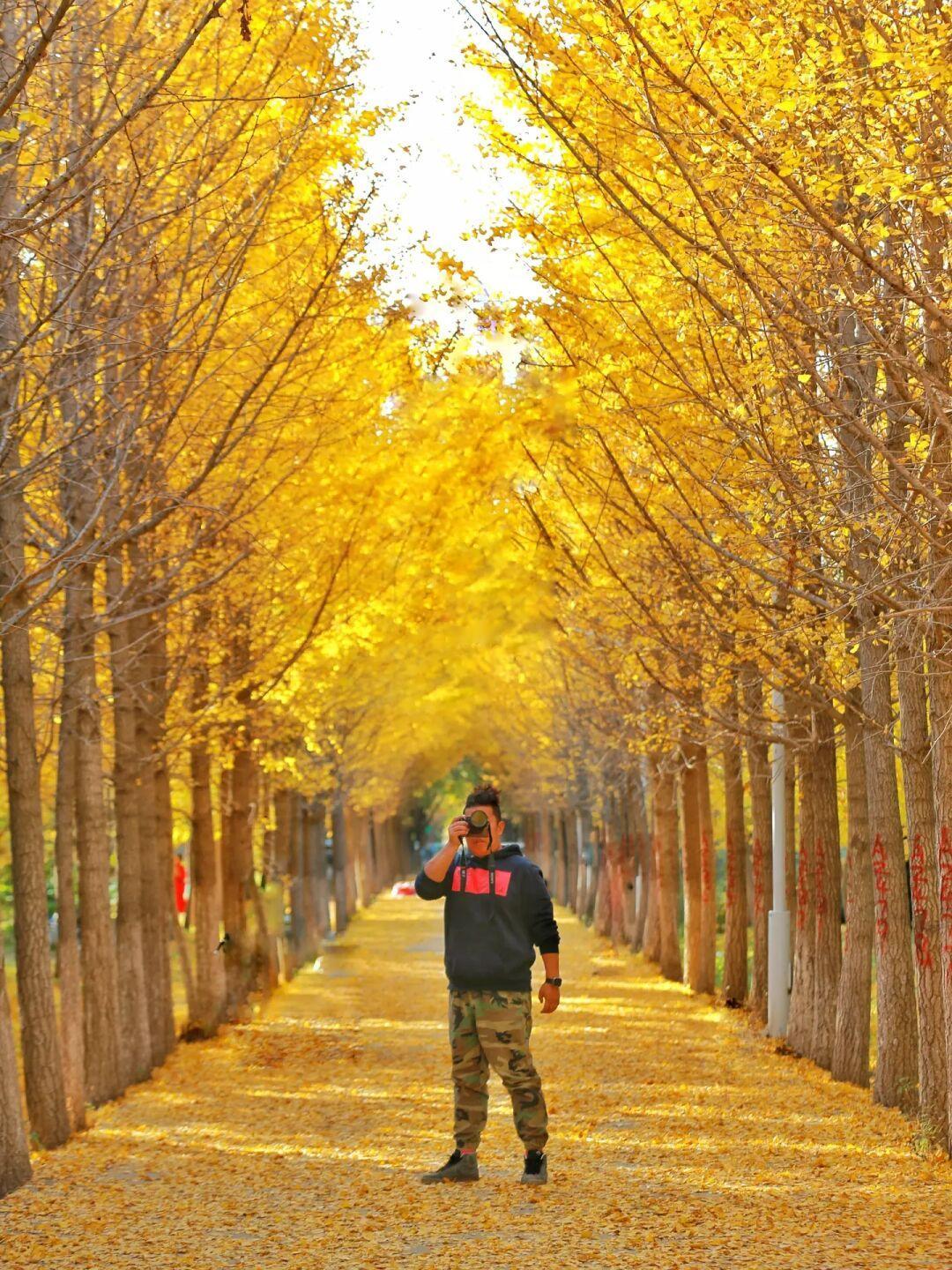 这里的银杏很密拍照可以很好的和人像融为一体,而且地上银杏叶现在不少,金灿灿的非常美,出