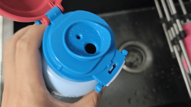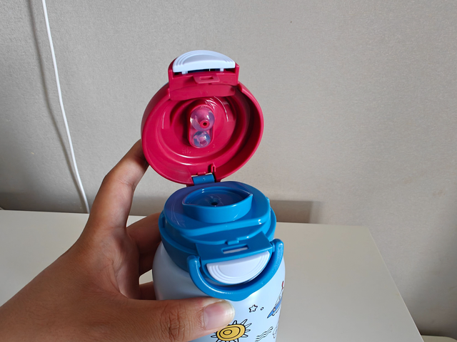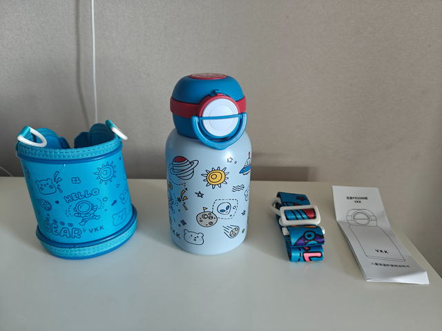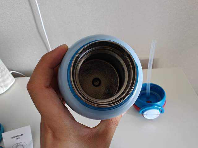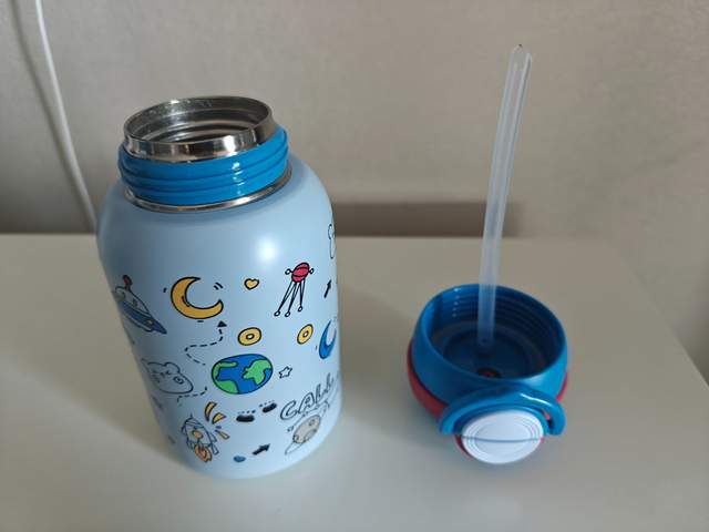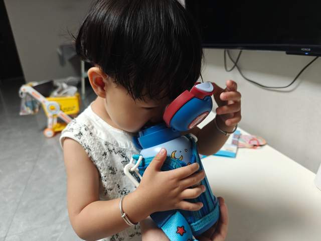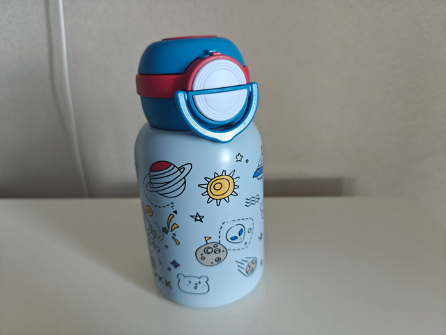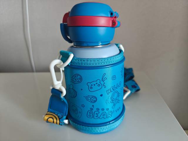 2.密封不漏水:装满热水拧紧杯盖后,无论上下颠倒、用力摇晃还是横向甩动,杯口都没有一滴渗漏。孩子将其放进书包,无需担心弄湿课本和衣物,家长也少了清理水渍的烦恼。