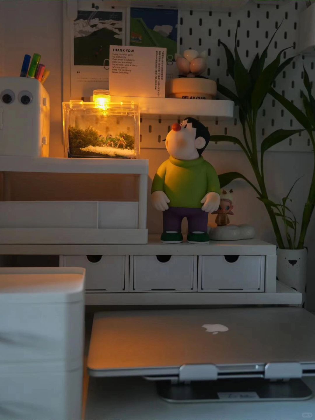 按自己的喜好倒腾布置了一下,打 开上面的小灯, 分分钟变成小夜灯, 实用而且氛围感十足~