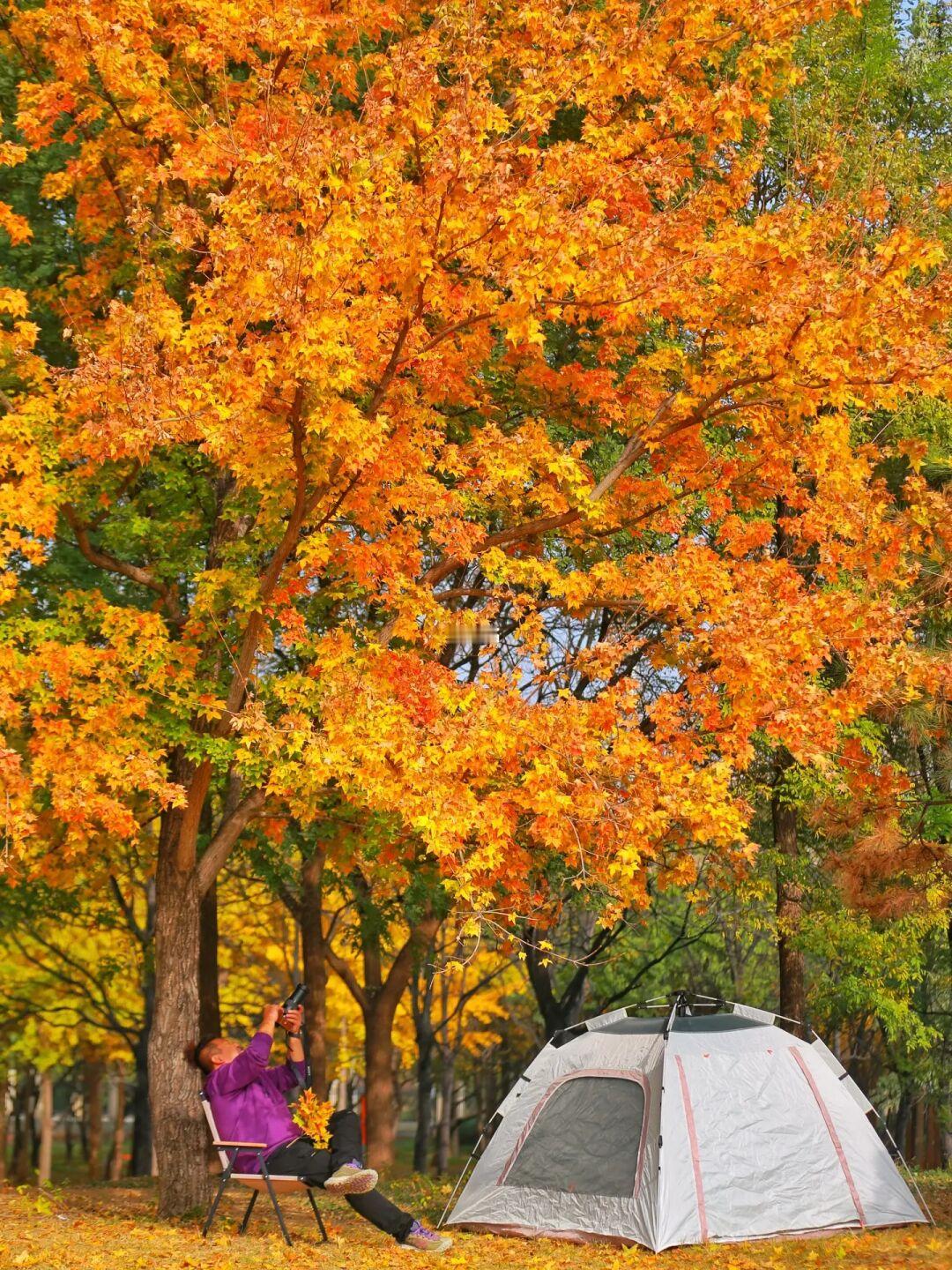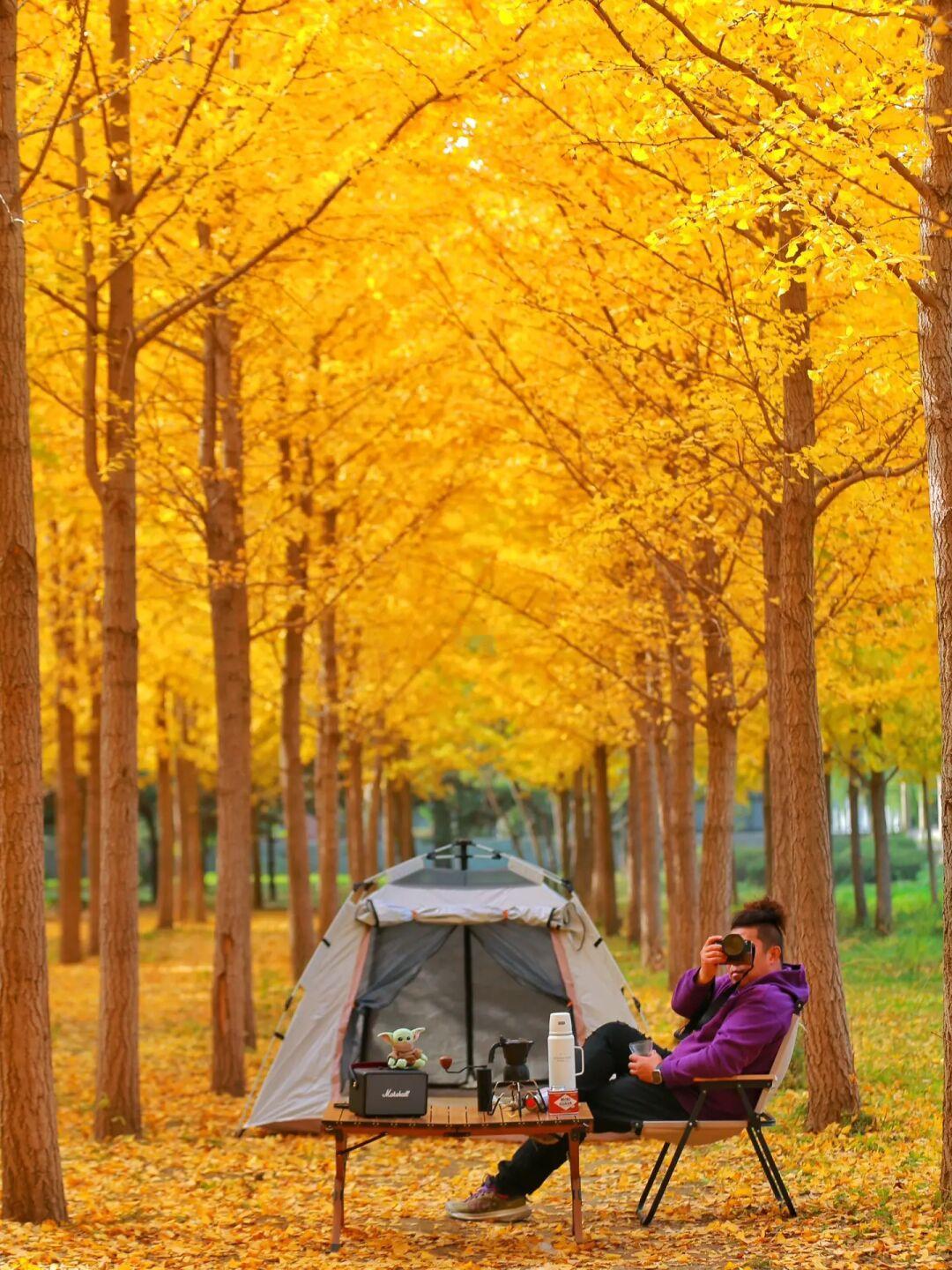 北京的秋天北京最美的季节,枫叶🍁银杏叶,黄栌,等,但我喜欢的还是银杏叶在北京西四环,居然藏着一片大的银杏树林,还让我可以满足秋天露营的愿望😄给我冲