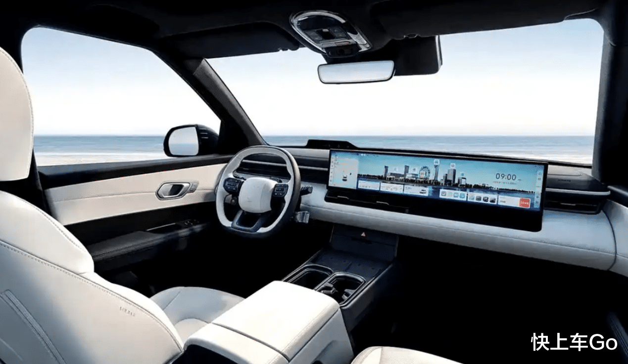 坐进车里,27英寸的4K分辨率连体屏看着就爽,还装了高通骁龙8295芯片,反应肯定快。另外,HUD抬头显示、双无线充电板这些实用配置也都有,而且用了怀挡设计,中控下面空出不少地方,能放不少东西。