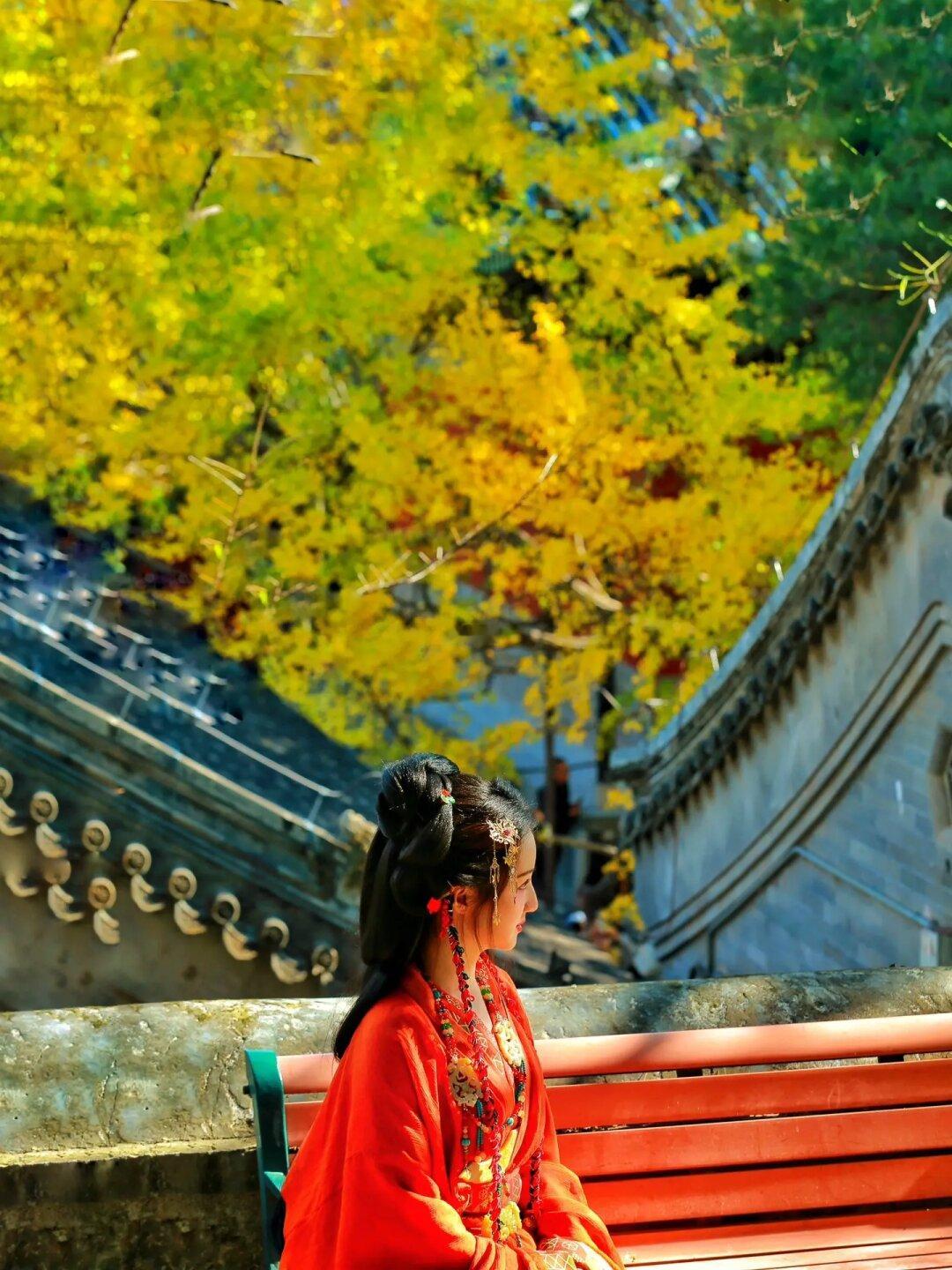 👔穿搭1、红墙白柱,青瓦灰檐和汉服绝搭,汉服的爱好者小伙伴可要抓紧机会了,红色,绿色蓝色等颜色的衣服推荐