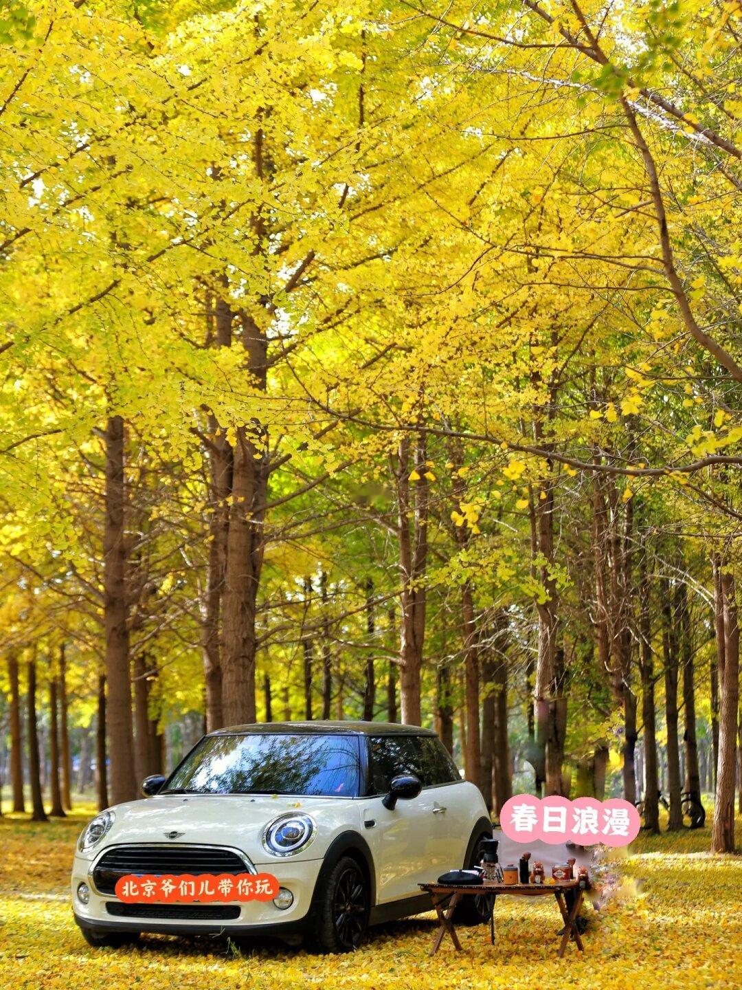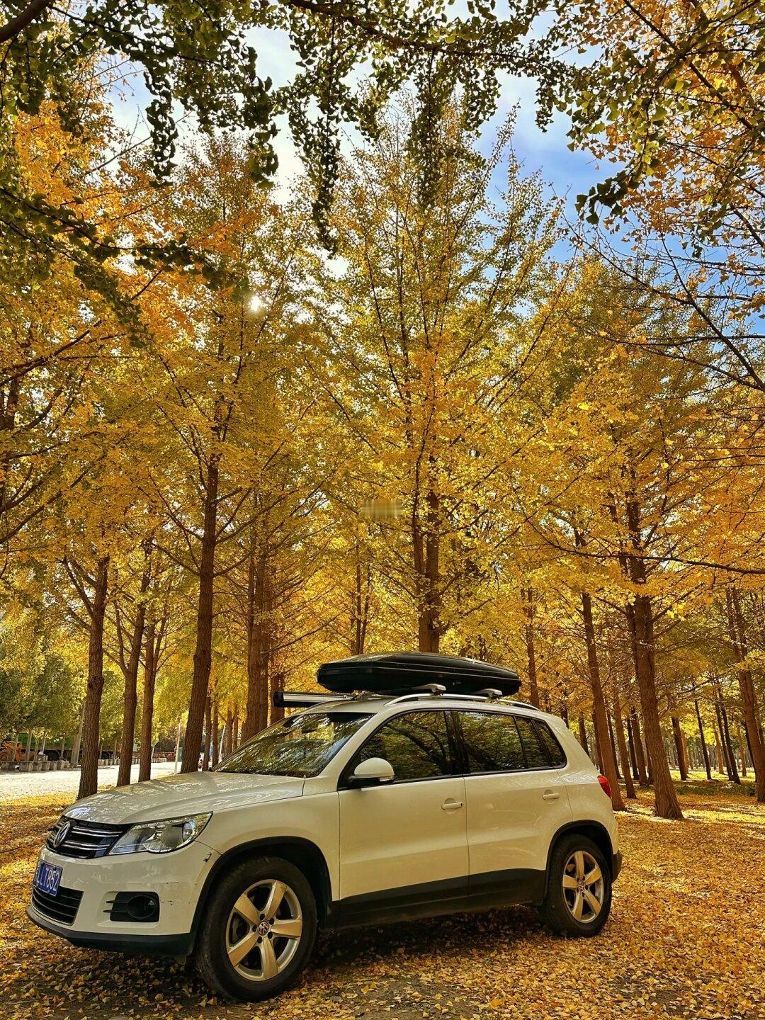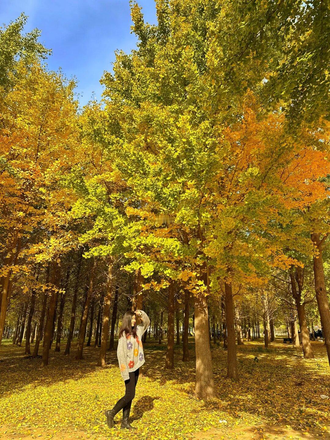 超极大的整整齐齐的一大片银杏林,中间还有点绿色,真的太美啦。本周末最佳观赏期