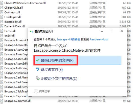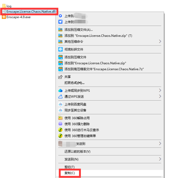 11、回到最开始解压出的文件,找到【Enscape.License.Chaos.Native.dll】文件,鼠标右键,选择【复制】。