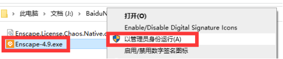 2、全部解压之后,找到【Enscape-4.9】应用程序,鼠标右键,选择【以管理员身份运行】。