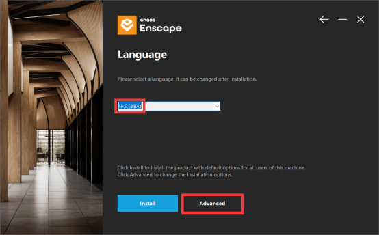 4、语言选择【中文(简体)】,然后点击【Advanced】。