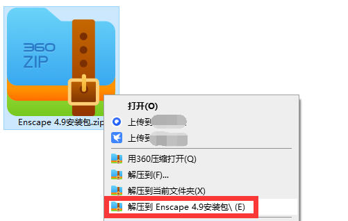 安装支持:支持Sketchup2018-2025,支持Rhino5-8,支持Revit2018-2025。安装步骤:1、得到压缩包之后,鼠标右键解压,选择【解压到Enscape 4.9安装包】。