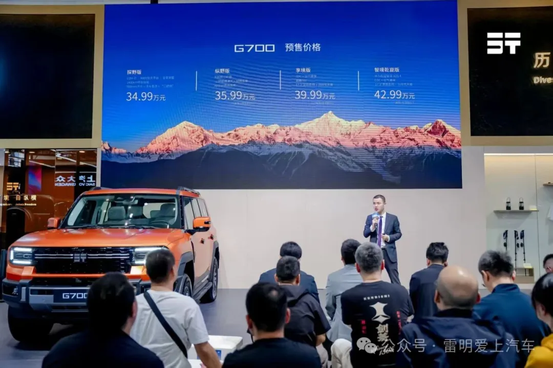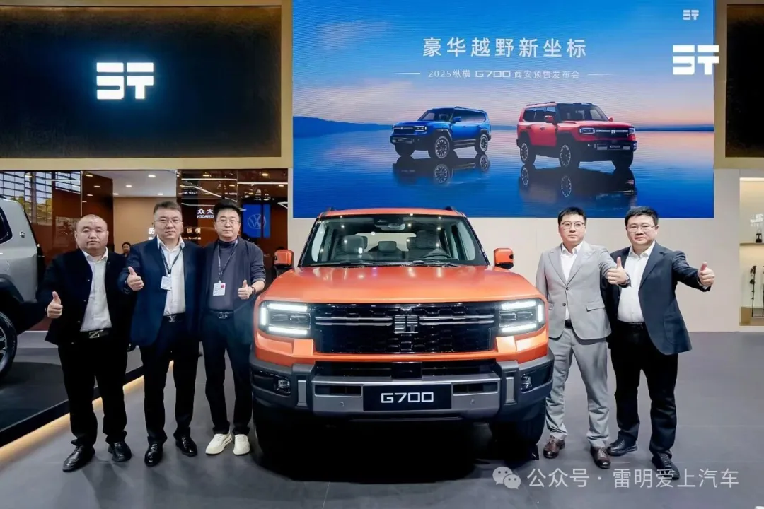 作为纵横品牌首款量产车型,G700自亮相以来就备受关注。在2025环塔拉力赛上,G700一战成名,赢得“中国电混穿越之王”的美誉;成都车展开启盲订后,更是创下24小时订单32891台的傲然成绩。本次发布会上,G700全球预售正式开启,以领先的技术优势,尽显中式豪华越野的价值典范。