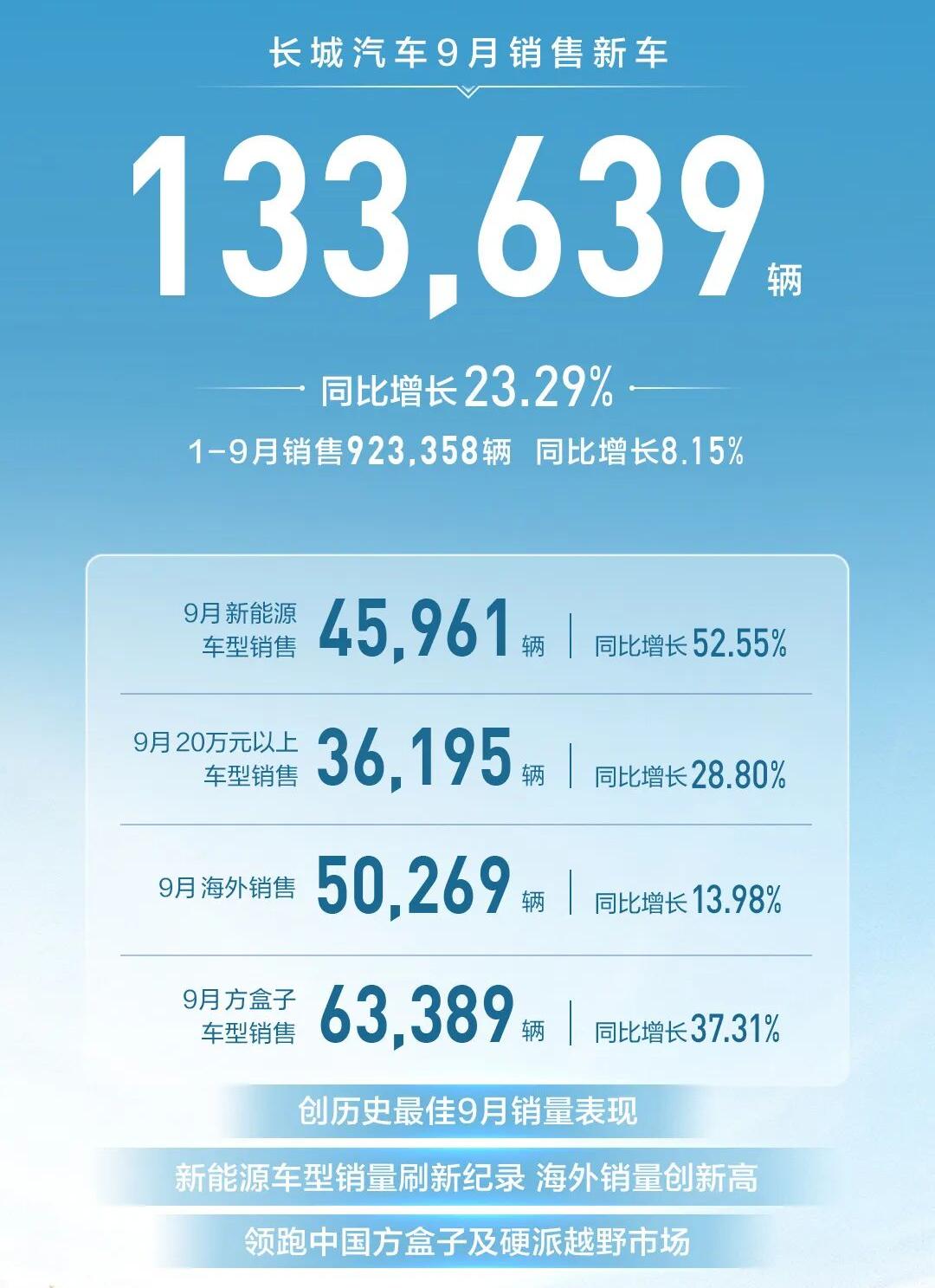 长城(13.36万辆,同比+23.29%)