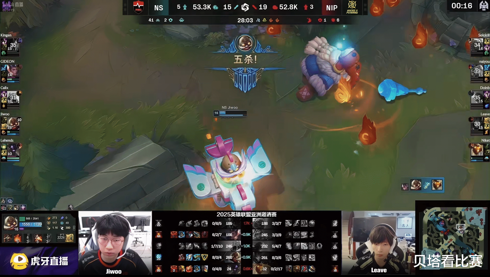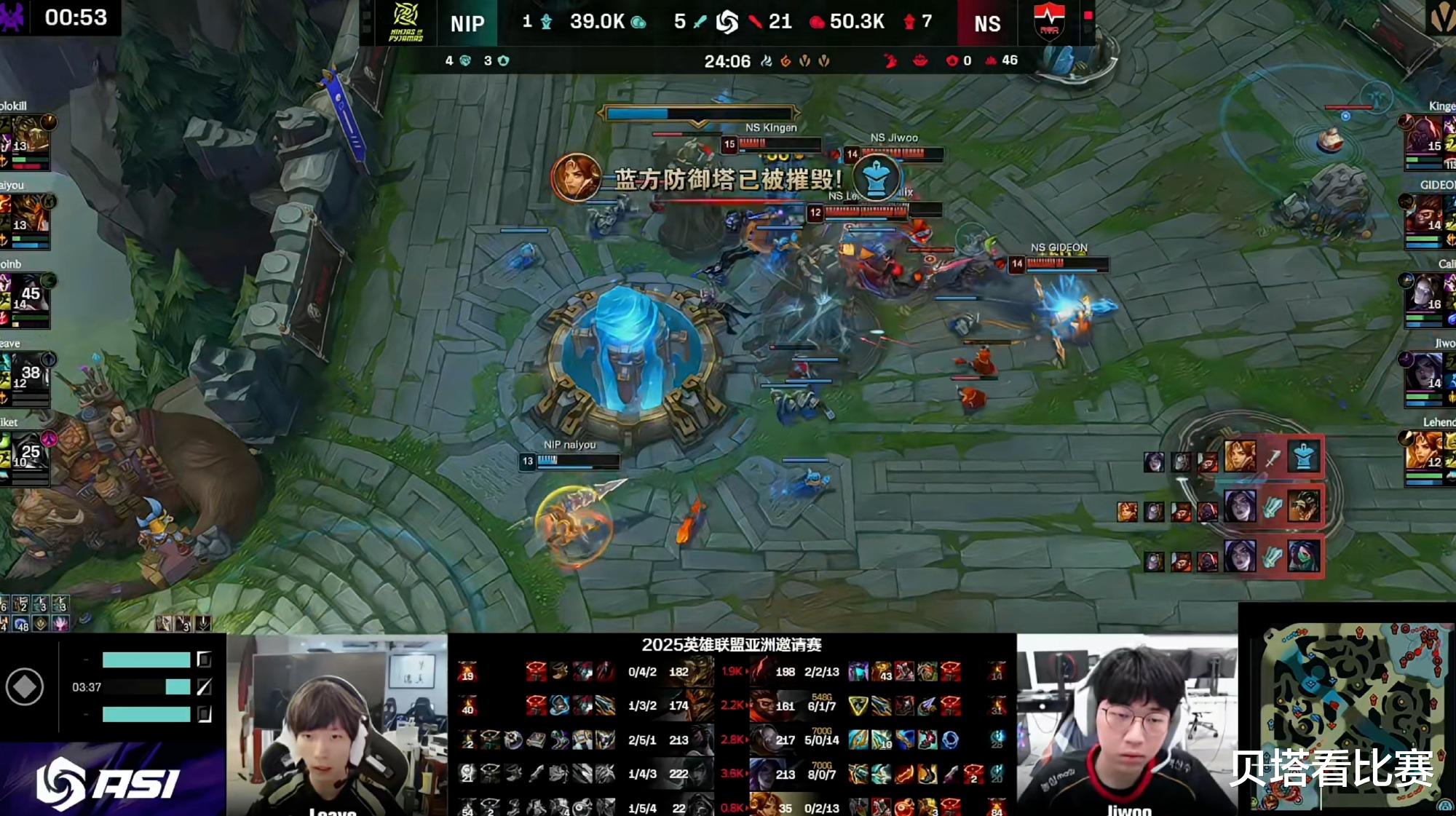 亚洲邀请赛NIP和NS的BO3,双方大战2局之后,NIP以0-2的战绩不敌NS,无缘淘汰赛。而三支参加亚洲邀请赛的队伍JDG、WBG和NIP,只有WBG晋级淘汰赛。相反LCK赛区的BFX、NS和DK,三队全部晋级淘汰赛。
