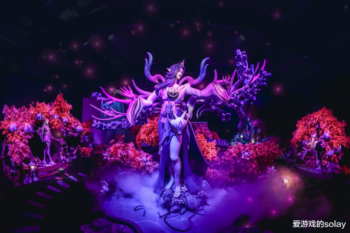 待正式进入生日会的会场,虚拟与现实的壁垒仿佛在那一刻被击碎:一尊巨型的“圣堂 灵魂莲华 莫甘娜”雕像映入眼帘!睥睨众人的莫甘娜,甚至隐隐约约能感受到这位堕落天使的压迫感。