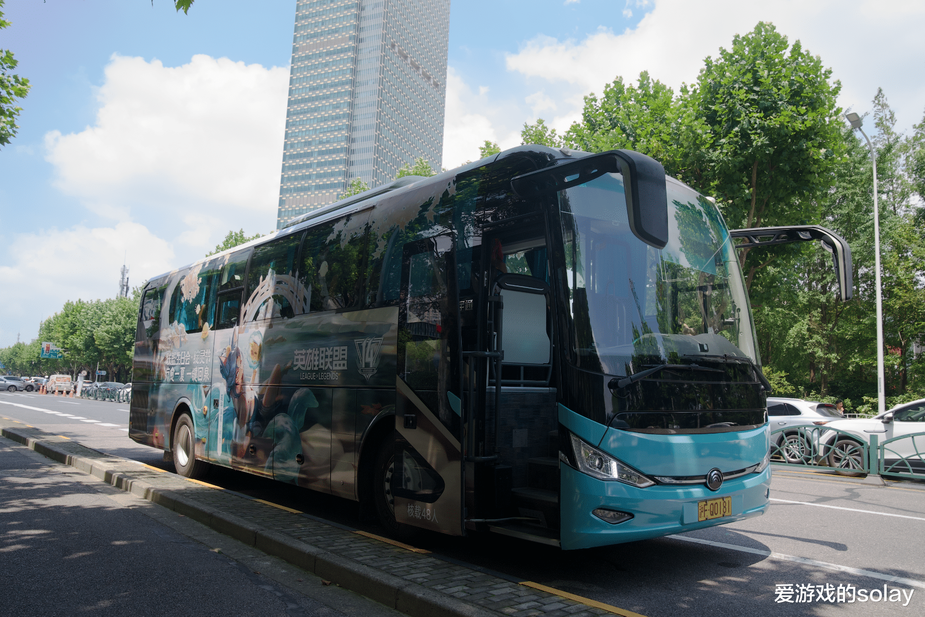 在ChinaJoy的现场,停靠着一辆以“绽灵节”为主题打造的痛车大巴,专门搭载慕名而来的我们直达生日会的“温泉”恢复状态。当大巴行驶在道路上,还有穿着COS服的导游小姐姐提供讲解,与大家分享彼此有关英雄联盟的的点点滴滴。