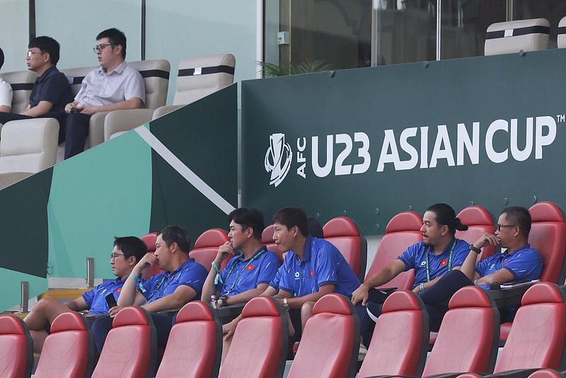 越南队教练组现场观看中国U23男足的四分之一决赛