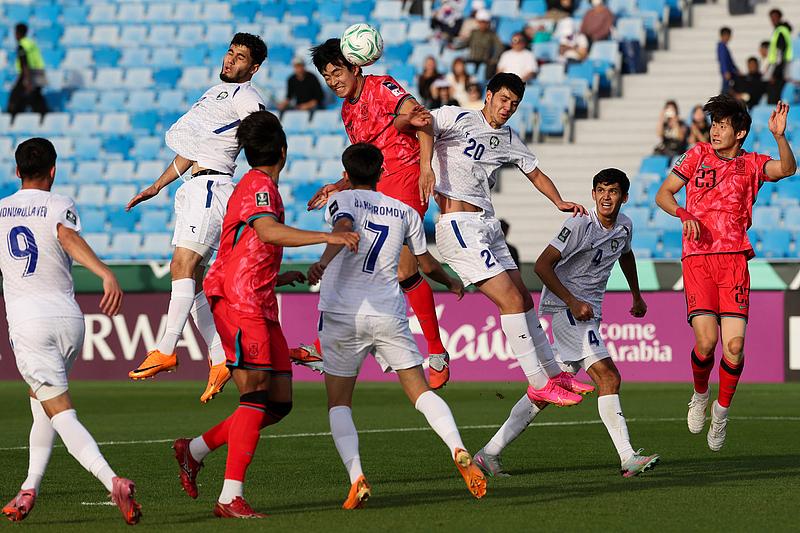 小组末轮,韩国队(红)以0比2不敌乌兹别克斯坦队