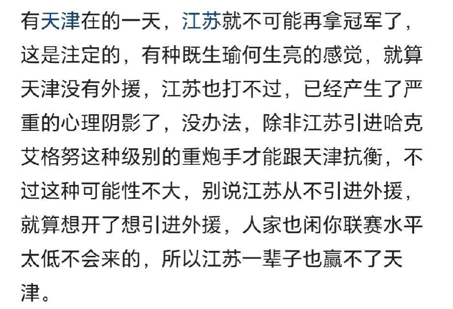 中国与美国,军事实力没得比,但中国走自己的路,也可以在世界上占有一片天地。 地域人总说:有天津女排在,江苏女排永远得不了冠军。我告诉你,有句话叫【走自己的路】!江苏女排除了七八十来人进各年龄层国家队,还输送大批人才在全国各地女排队,这是国内的唯一。重金买国外的,国内拼凑几个像袁心玥那样的现成的,花金钱,成为强队太简单了。江苏女排不买不拼,自己建设发展,目前也是国内一流球队,她们在联赛夺不了冠军,在亚洲在世界上,她们都巳拿了很多很多的冠军,请问你有吗?