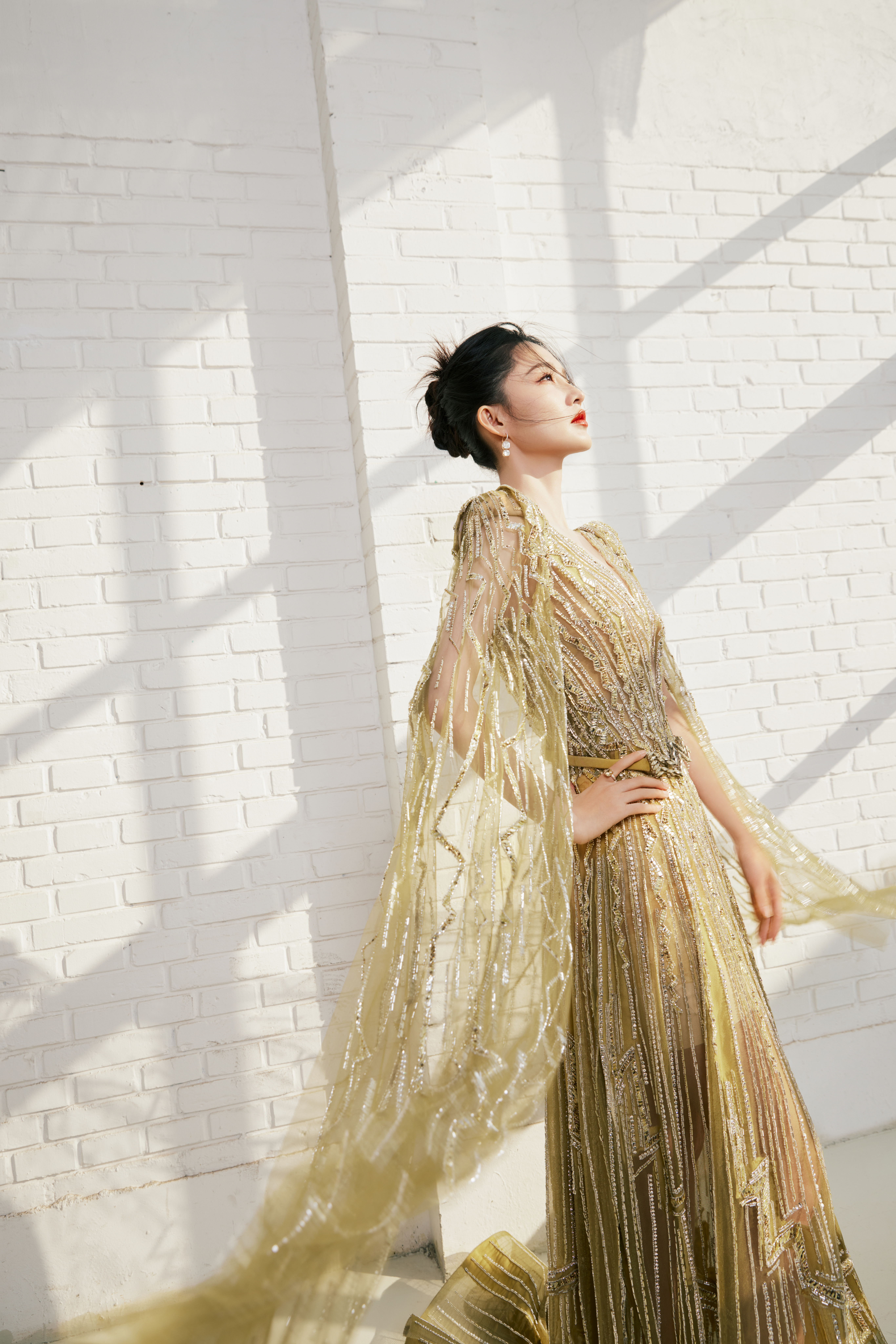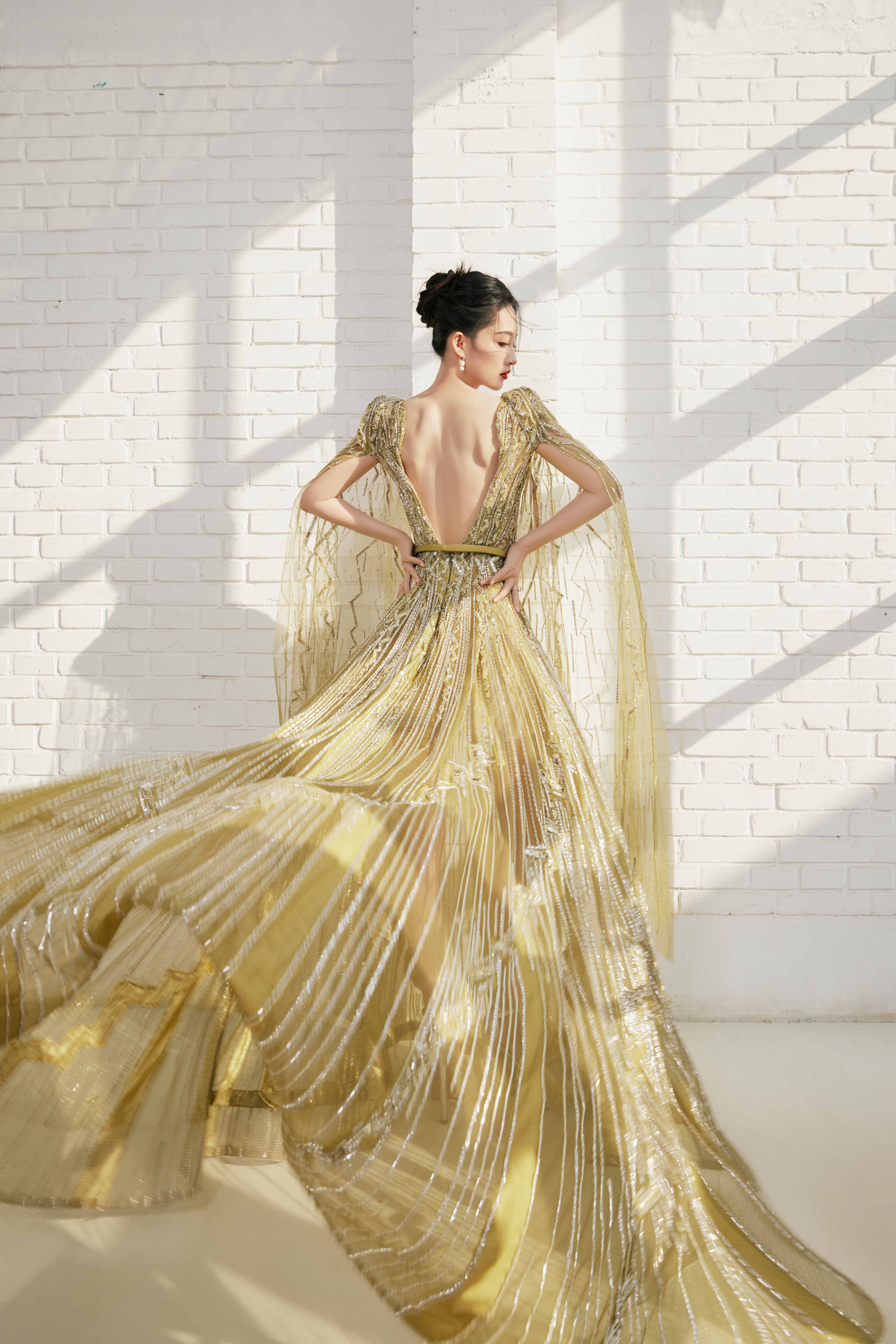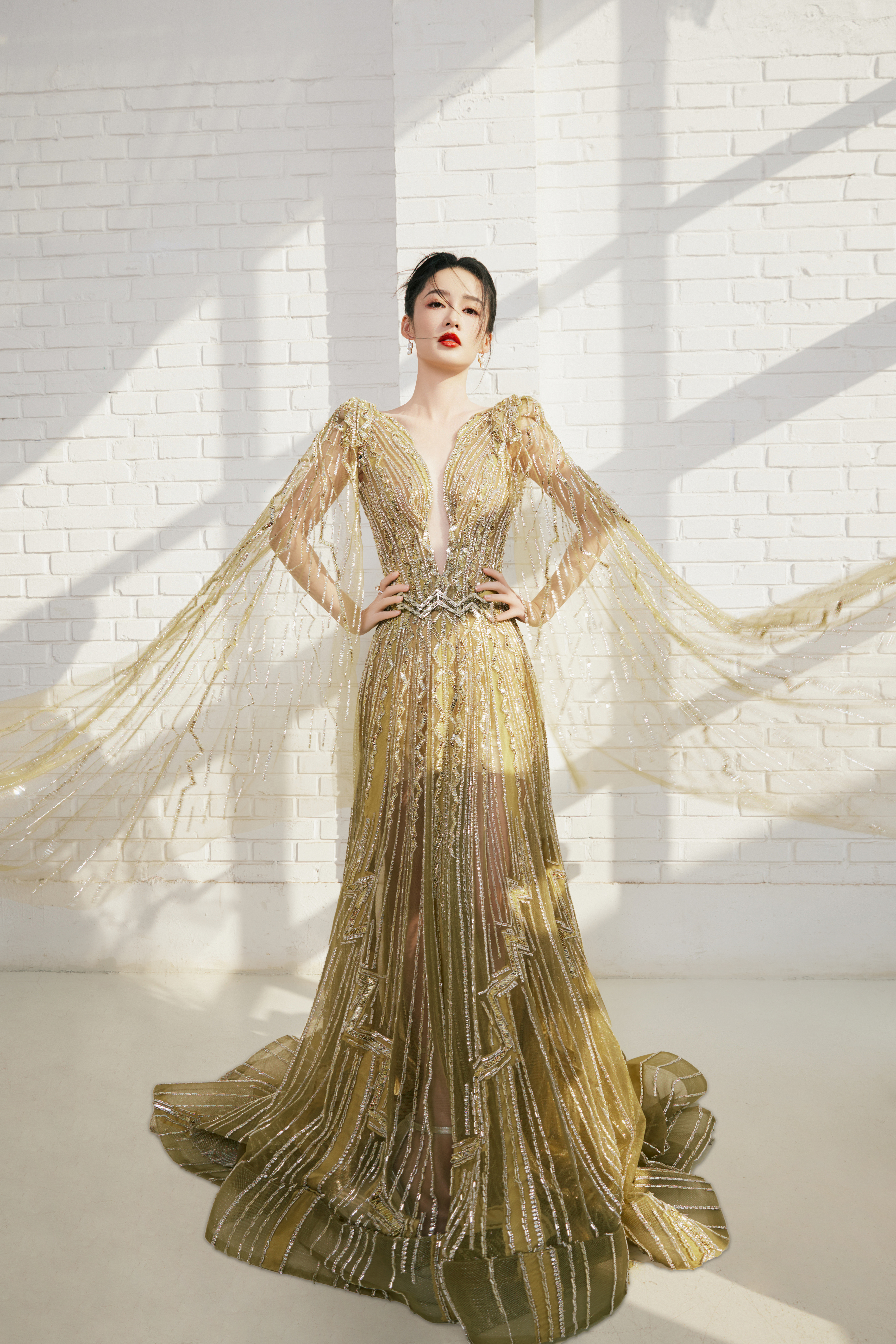 李沁 长纱曳地,蝶影翩跹#李沁鎏金深V##张若昀李沁一起走红毯#