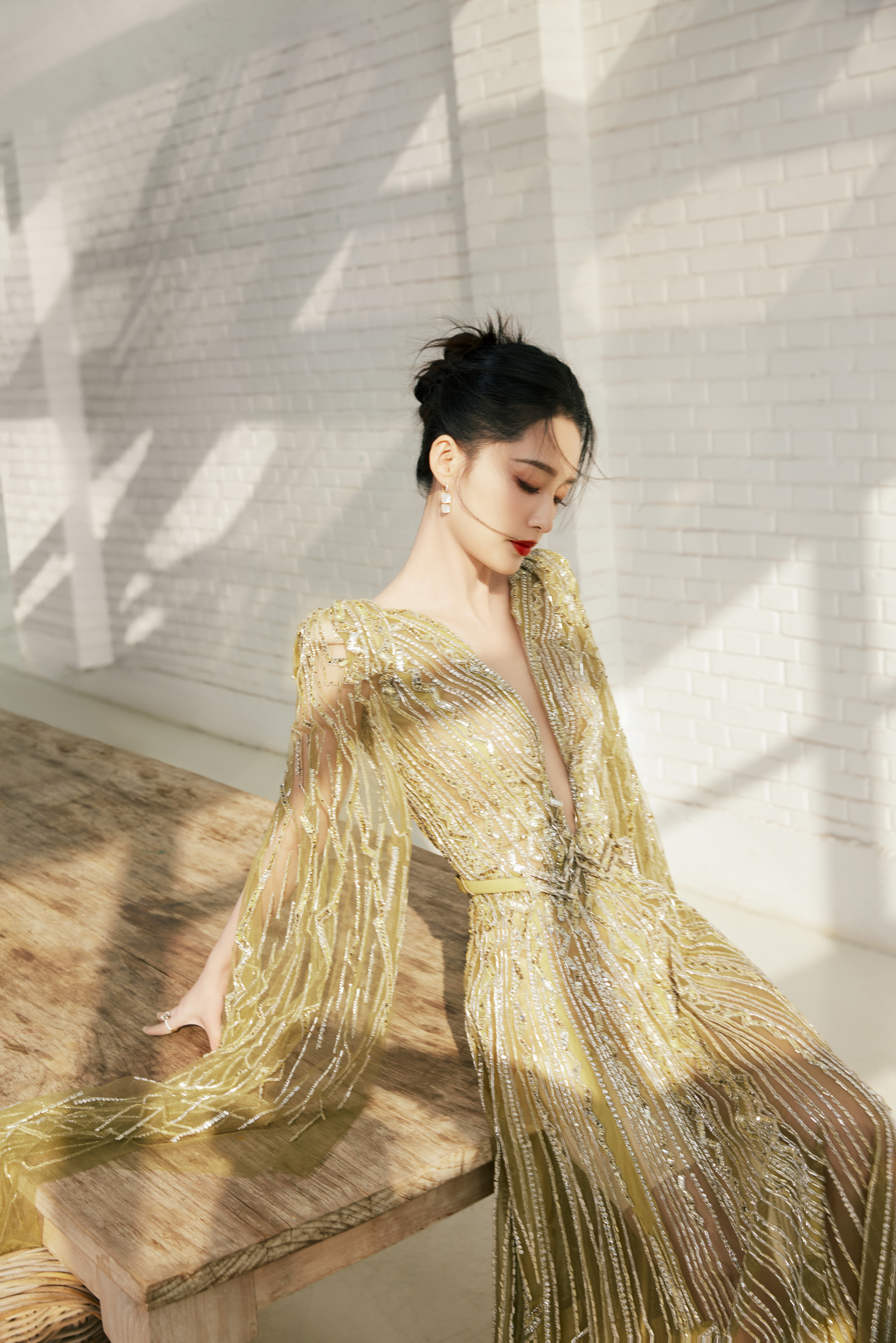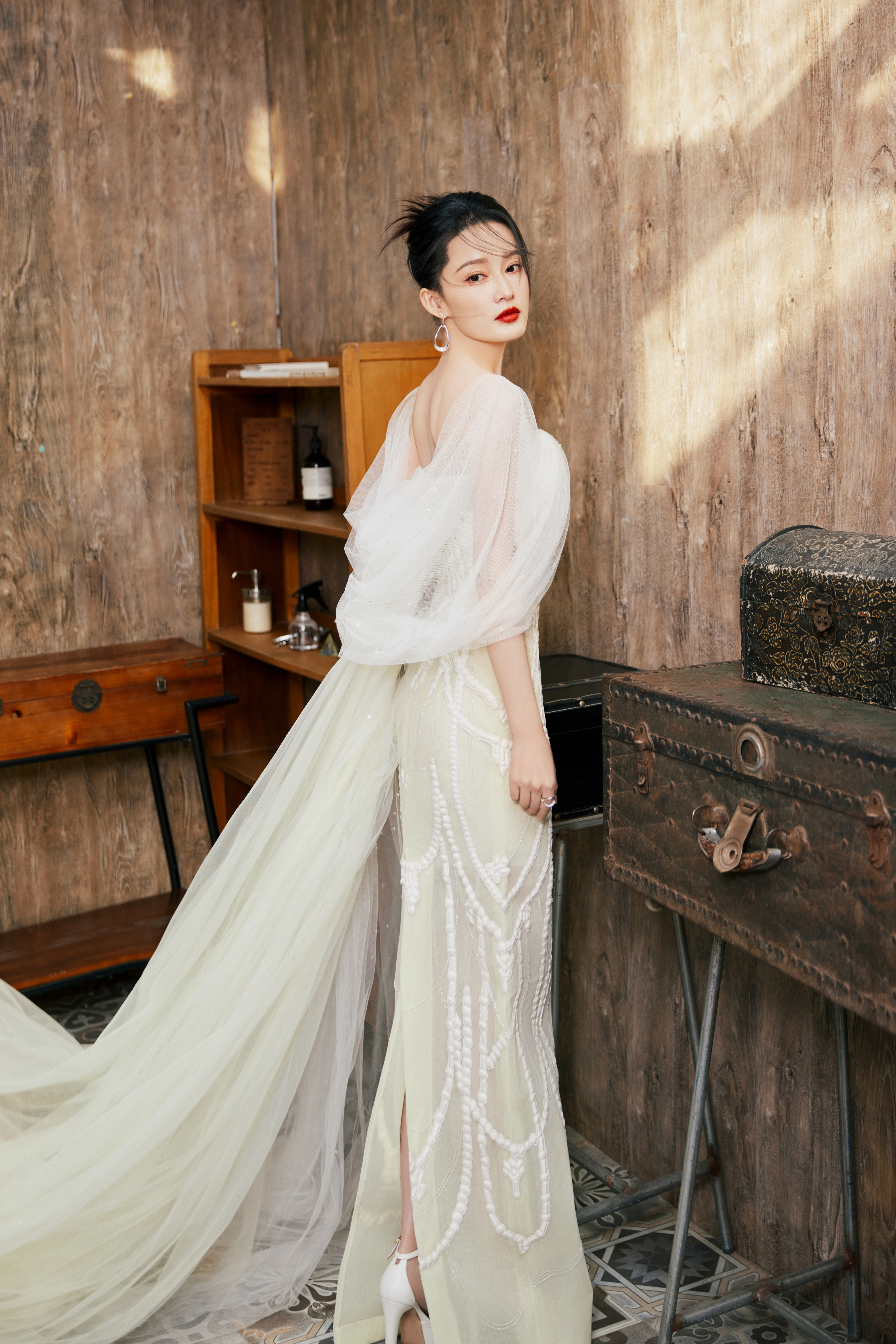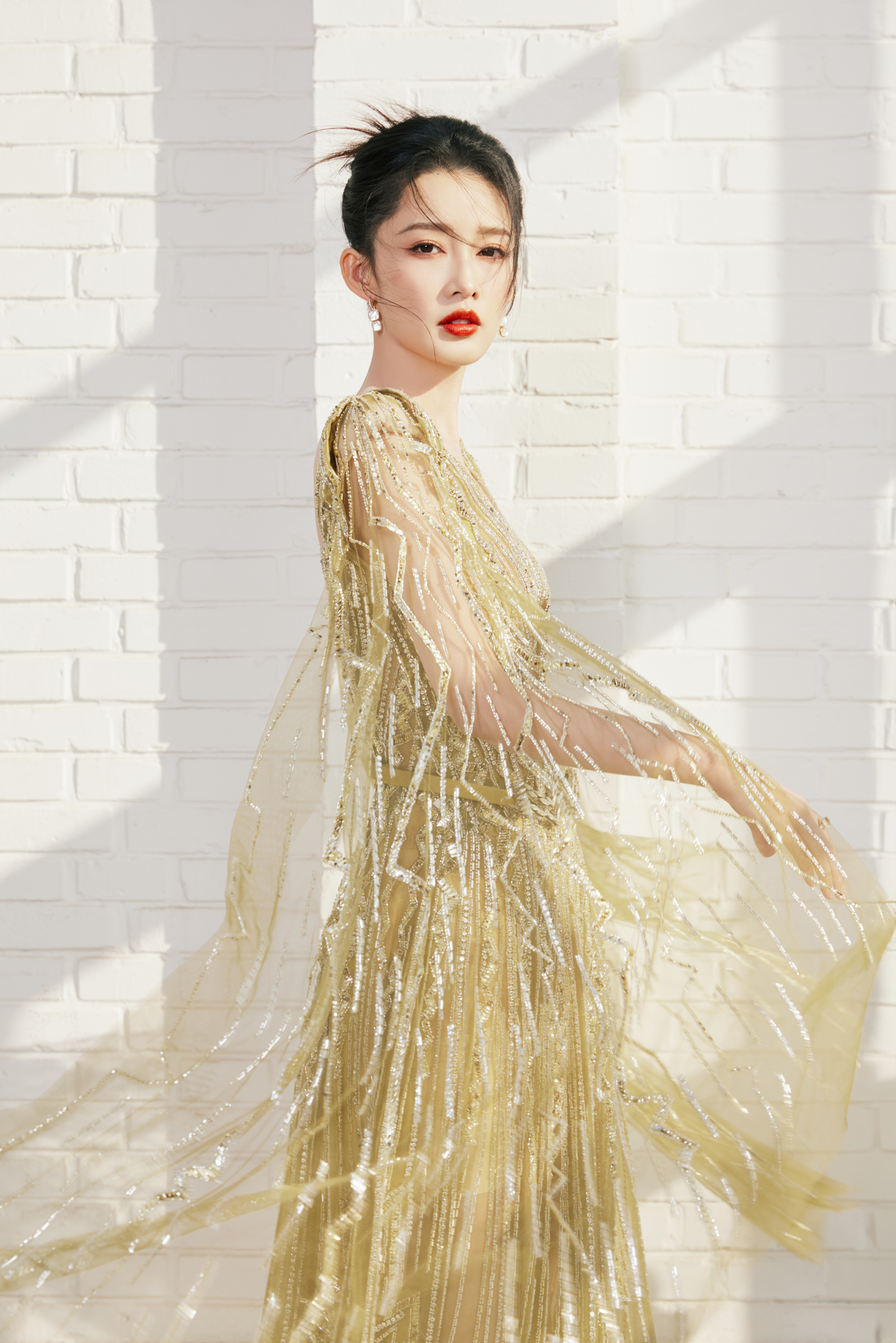 李沁 长纱曳地,蝶影翩跹#李沁鎏金深V##张若昀李沁一起走红毯#