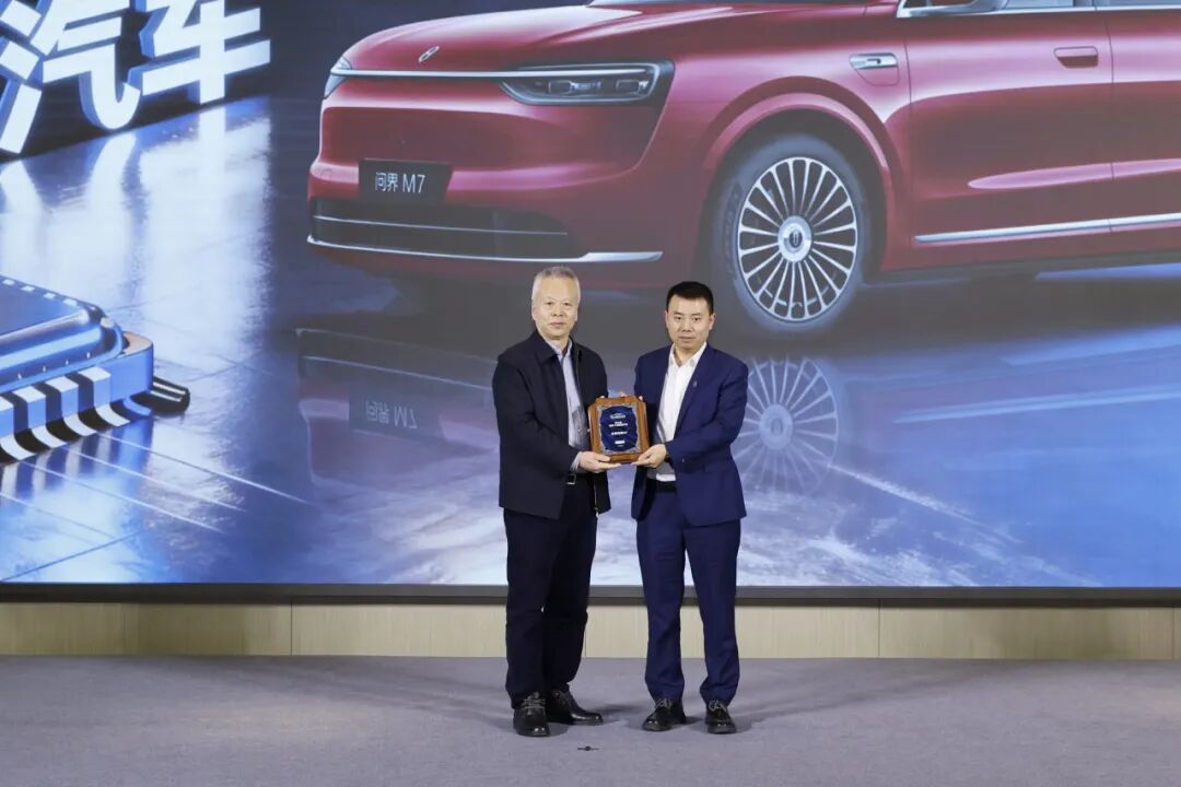 中国机械工业联合会副会长、党委副书记张文宏为赛力斯汽车智能生态平台总经理段文平授牌