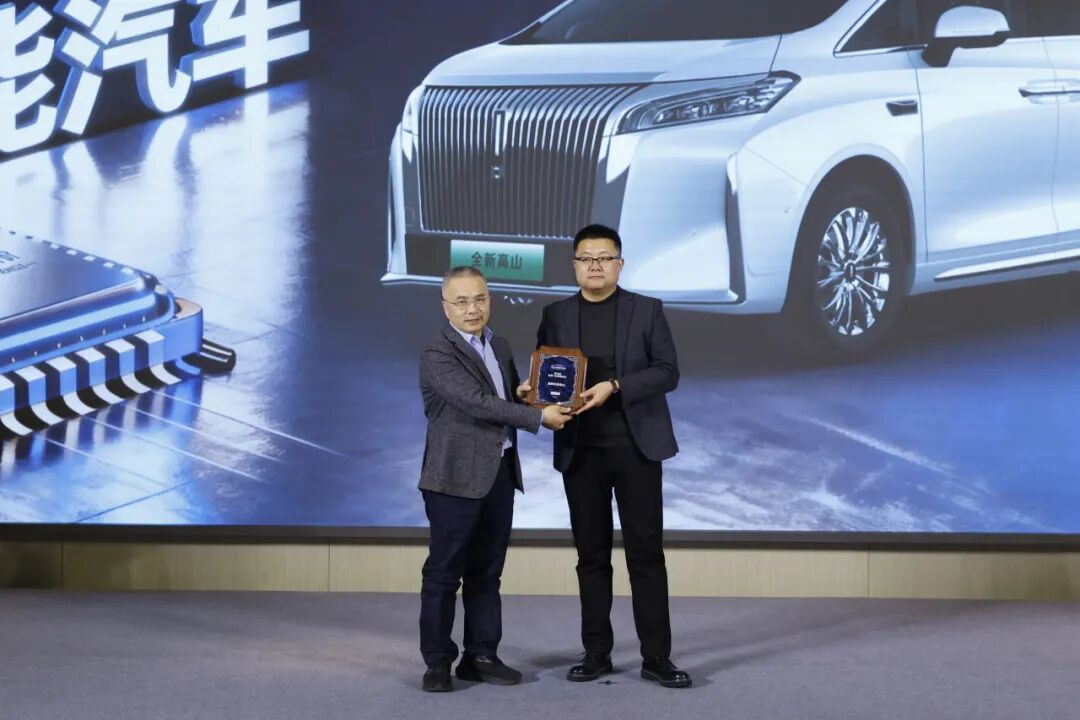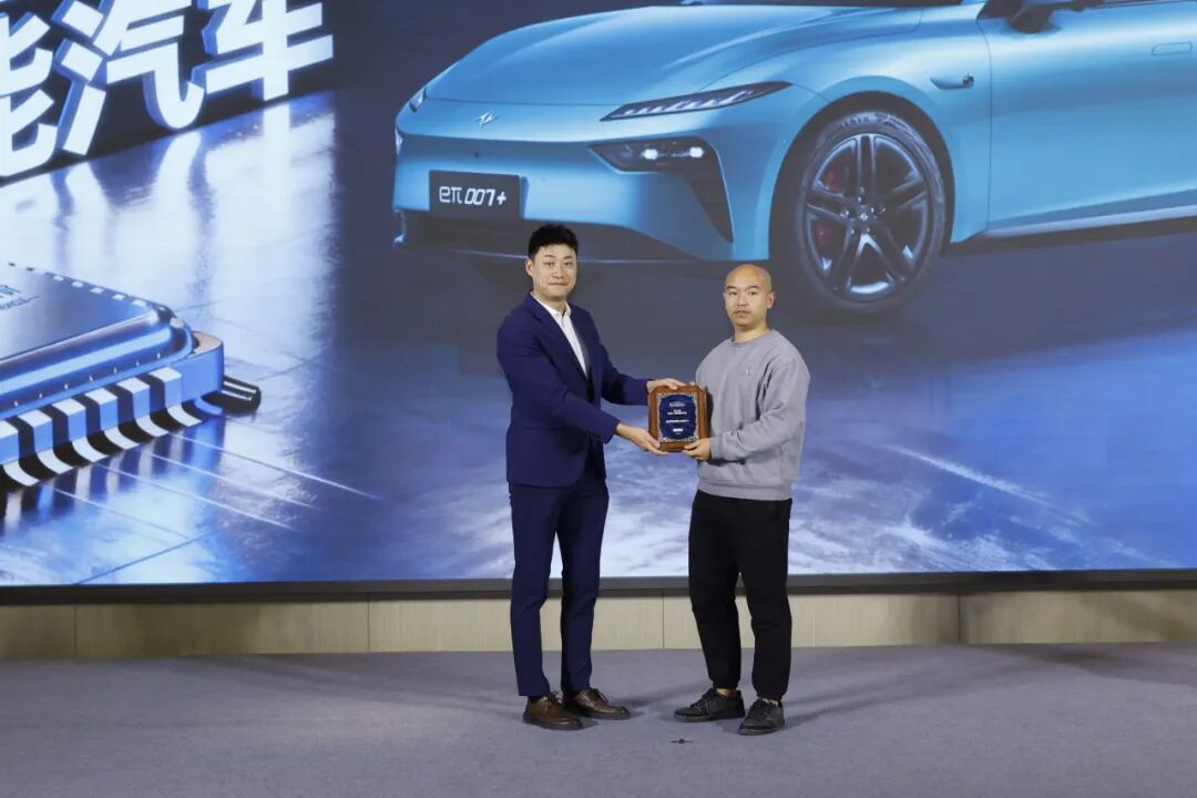 世界十佳智能汽车评委会秘书长孙浩然为东风汽车研发总院智能驾驶与座舱开发中心智能化技术副总工程师李祥一授牌