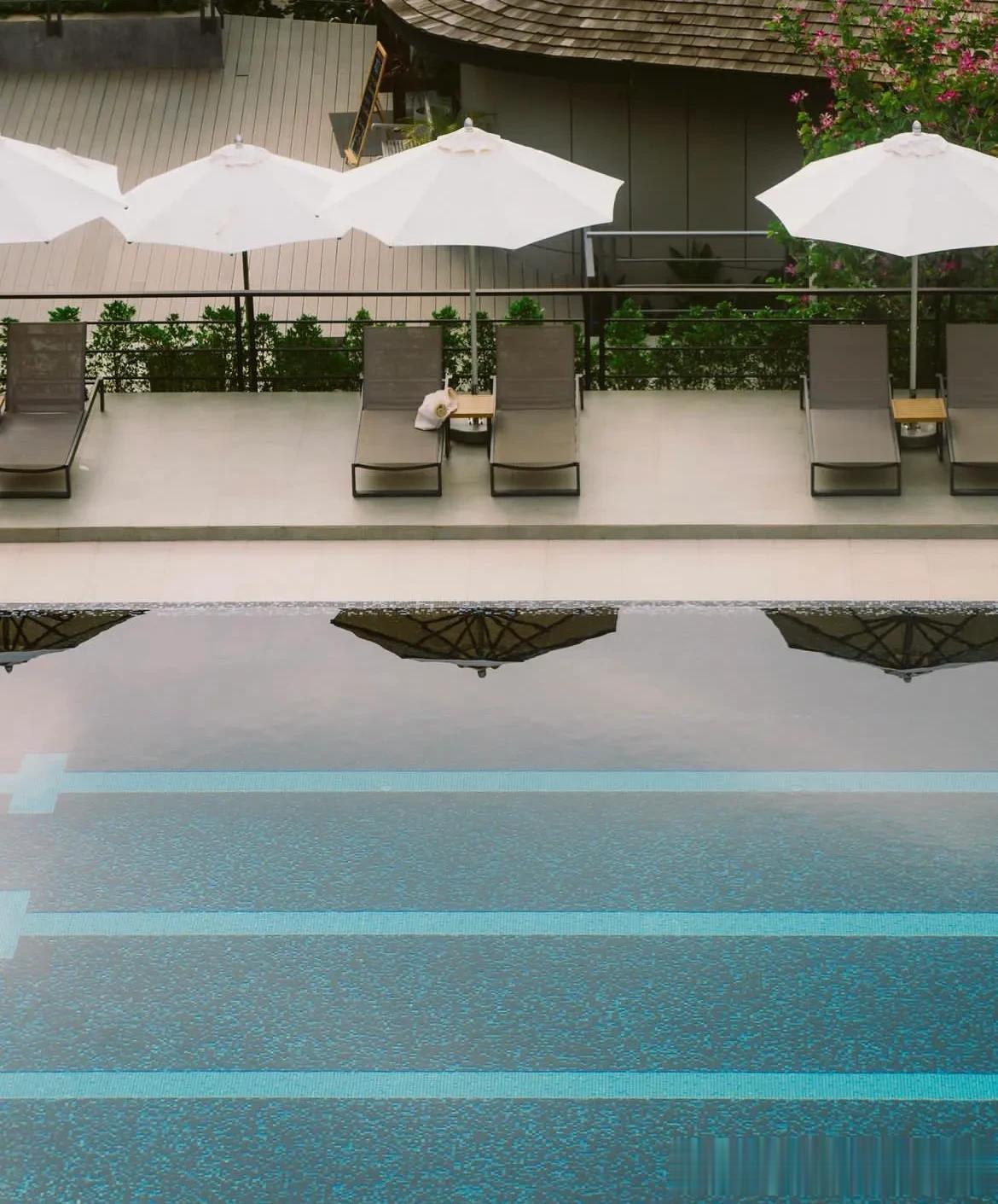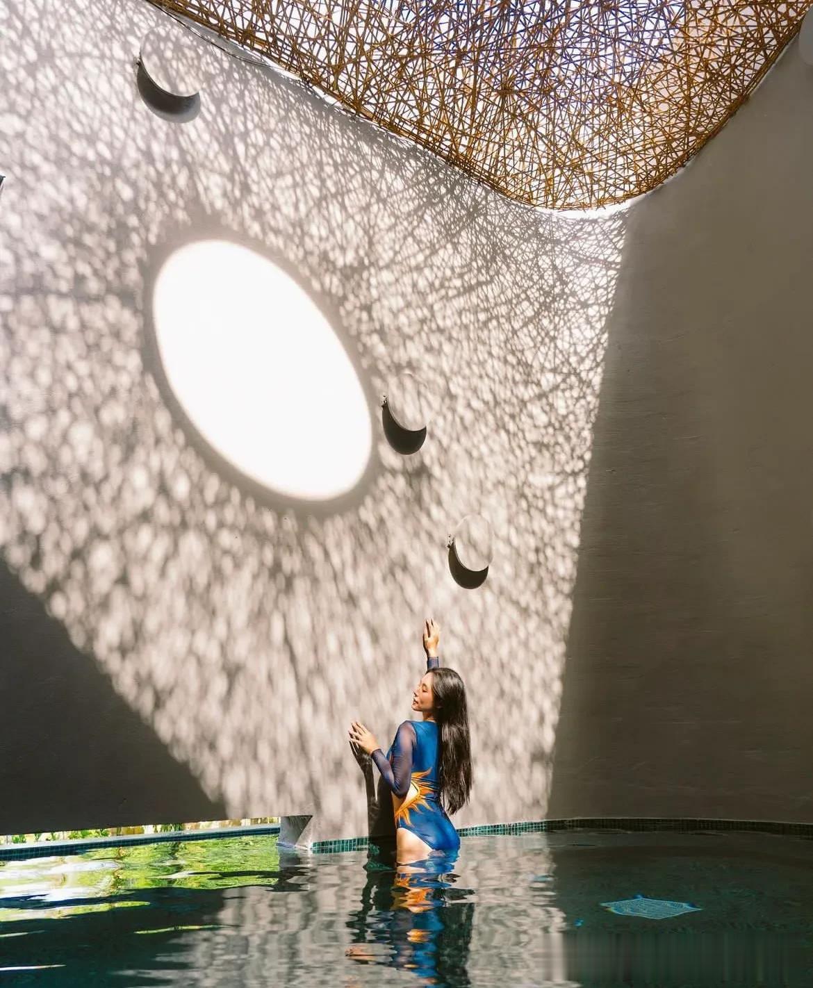 甲米也是泰国超有名气的旅游胜地,莱雷海滩是甲米的攀岩胜地,海滩东西两边的山壁是天然练习场。甲米这里的海滩都很美,度假酒店也很不错,这家酒店的设计很美,光影投射出来的图案很好看,泳池也很有艺术感,拍照打卡,画面拍出来的效果,有一种视觉美感。