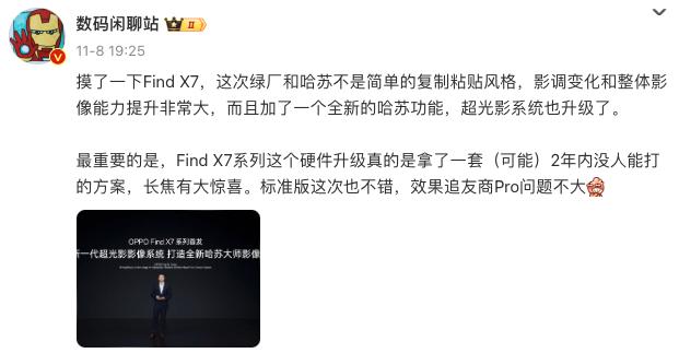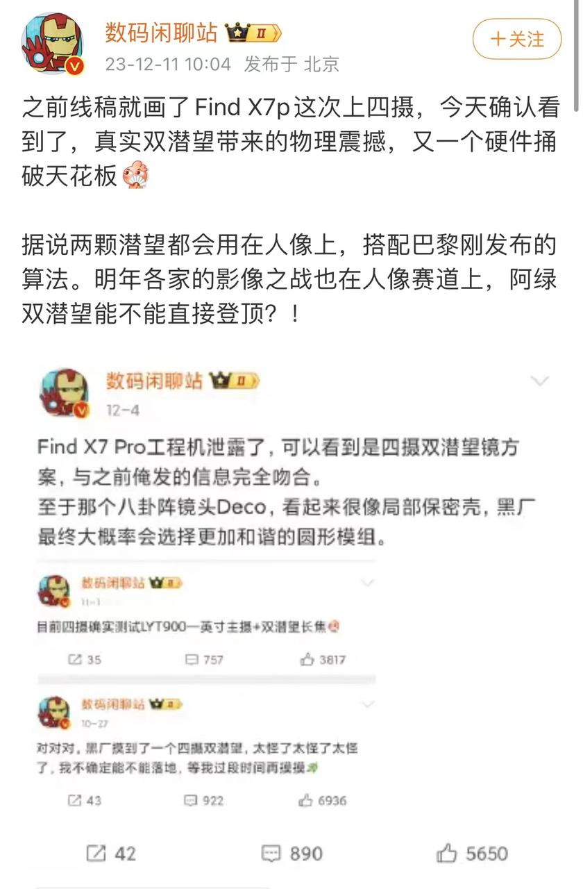 听到朋友一直吐槽iPhone 15 Pro,没玩游戏一天也都要两充,感觉双十一没贪降价去入手确实是个非常理智的选择。关键是今年15 Pro在影像上也几乎没有升级,唯一的5X潜望长焦只给到Pro Max,而宣传的可以拍摄空间视频功能,又需要搭配Vision Pro才能体验到。 对比之下感觉还是国产这边的骁龙8 Gen 3旗舰新机更值得期待,像最近站哥就发文透露,OPPO Find X7 Pro将带来四摄模组,并配备有双潜望镜头,要知道目前不少旗舰机甚至都还没给到潜望长焦镜头,而这次OPPO直接给到两颗,硬件堆料恐怕是找不到对手了。 而且据说这两颗镜头都会用在人像上,再搭配上此前巴黎影展上发布的新一代超光影图像影像系统,预计这款OPPO Find X7 Pro又将成为年度影像机皇的强有力竞争者,注重影像拍摄体验的朋友可以耐心蹲一波。#数码圈八卦#