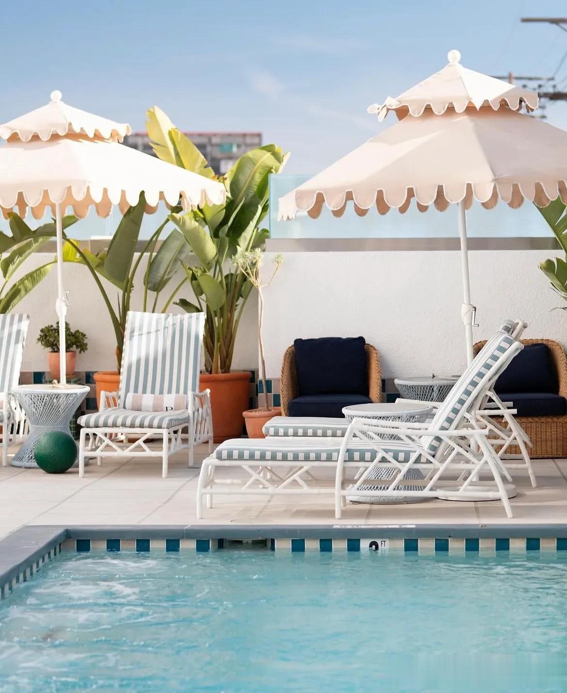 美国加州,加州不止有旅馆,还有阳光,还有在灿烂阳光里的各种度假酒店,来加州享受阳光的人很多,这里的酒店,有些泳池很美,私家大泳池,周围都是好看的物件,色彩也很美,在这里拍照的感觉,别具一格。