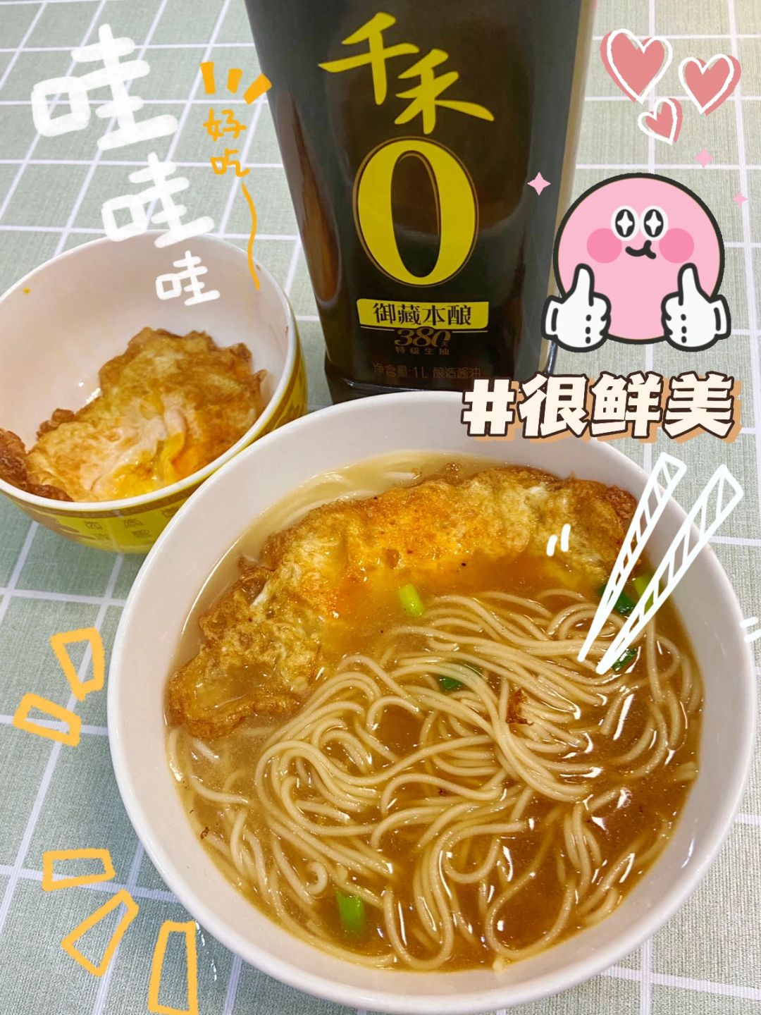 1️一勺猪油 一点点老抽 一勺白砂糖 一勺食盐🧂 小半勺黑胡椒粉 一勺葱花 一勺千禾零添加酱油混合做个汤底,兑水煮开