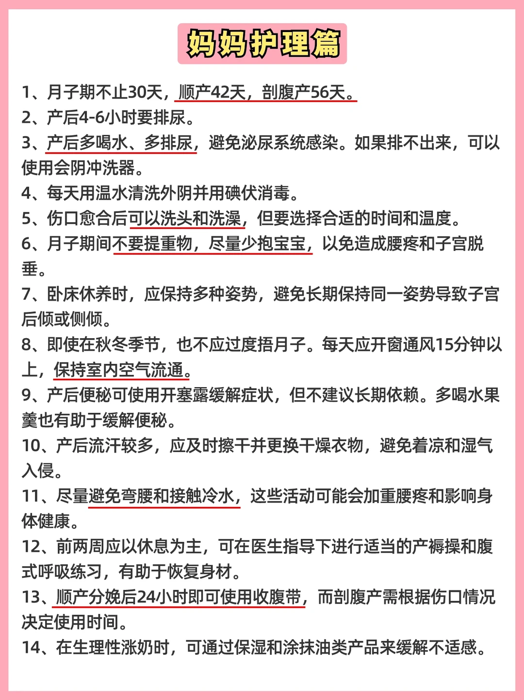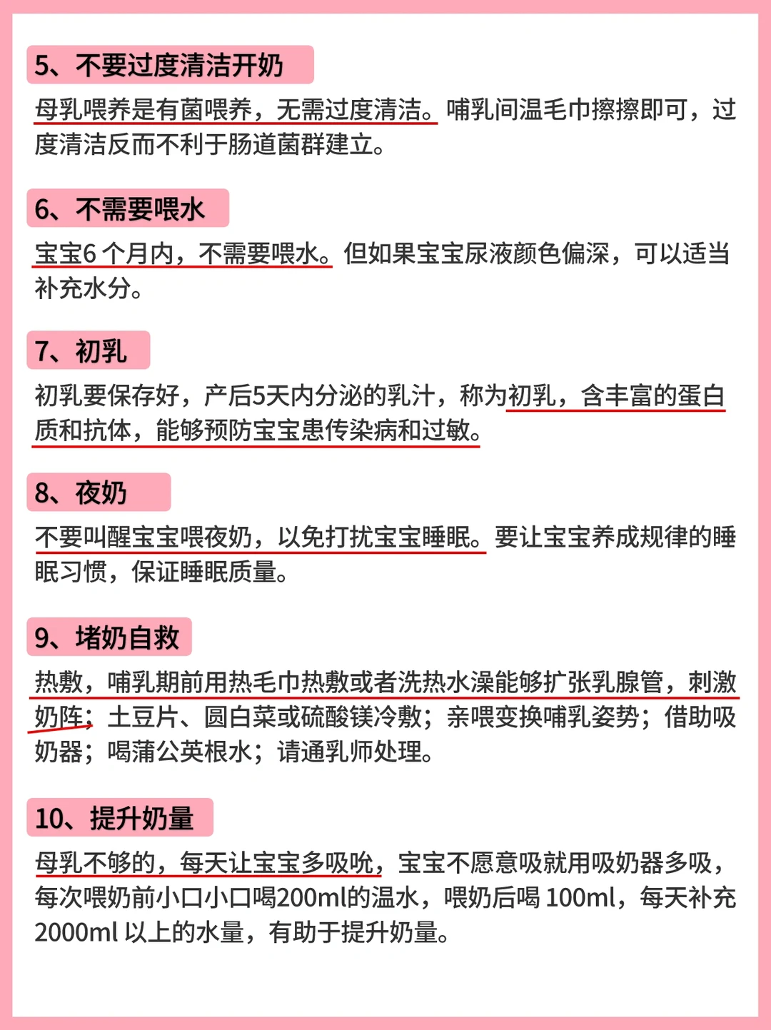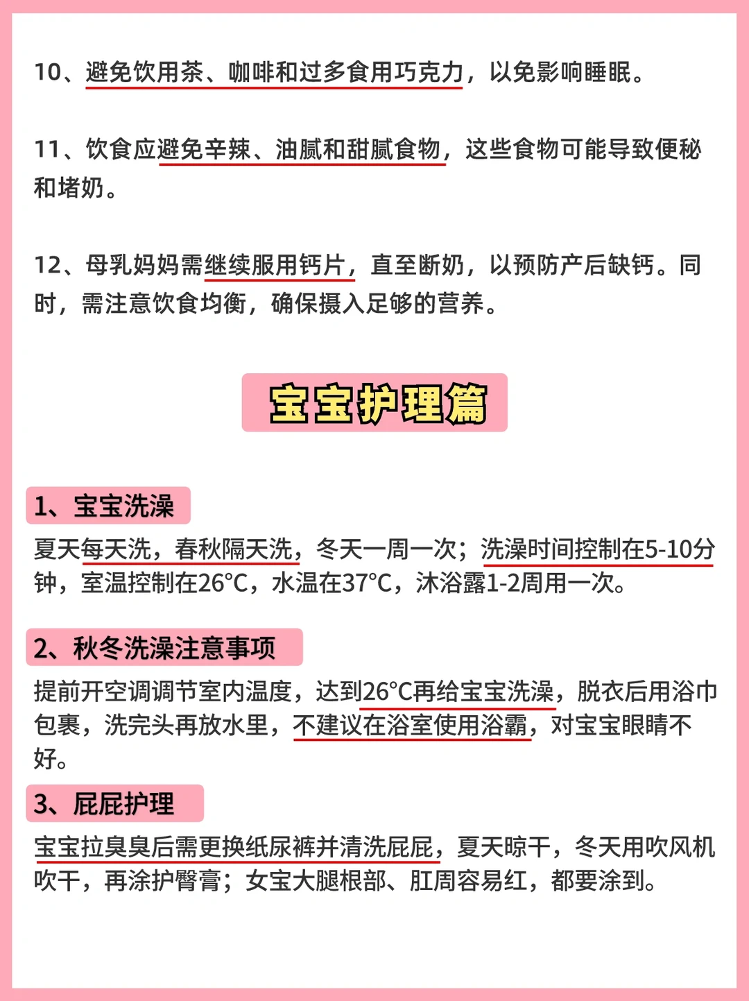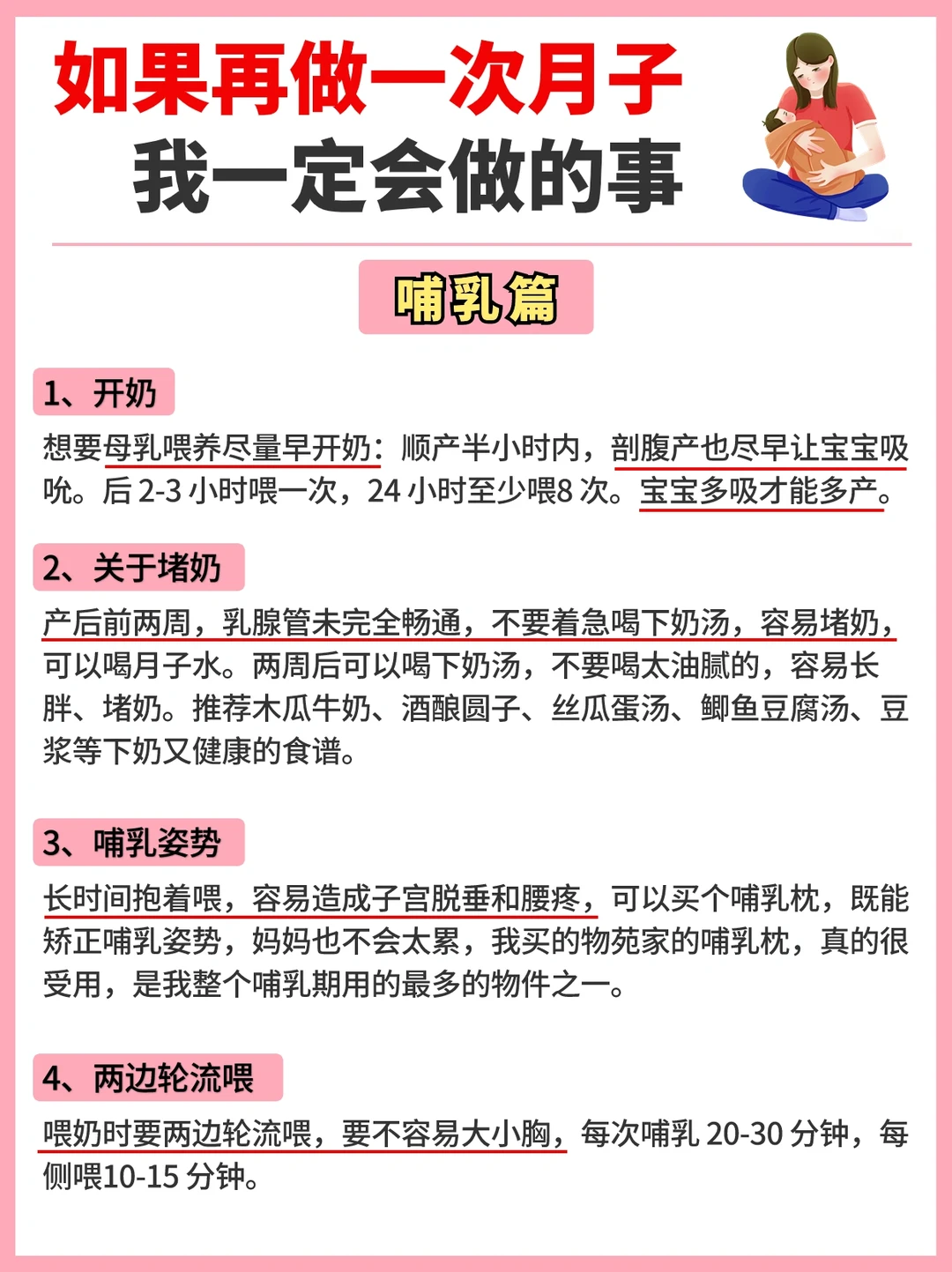 打算在家坐月子一定要知道这些事!月子是女人的第二道重生,做好月子相当重要!月子病是很难根治的,作为过来人,这里给孕妈妈们整理了在家坐月子全攻略,希望能帮助到打算在家坐月子的准妈妈们~分享给你婆婆,照着做! - ❤哺乳篇(见上图) 1、开奶 2、关于堵奶 3、哺乳姿势 4、两边轮流喂 5、不要过度清洁 6、不需要喂水 7、初乳 8、夜奶 9、堵奶自救 10、提升奶量 ❤妈妈护理篇(见上图) ❤饮食篇(见上图) ❤宝宝护理篇(见上图) - 希望姐妹们都能做个舒心的月子~~~
