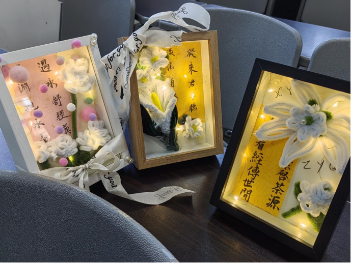 所有手工作品与书法书签最终汇聚于专题展示框中,交织成一幅融汇匠心与诗情的文化长卷。现场氛围温馨而热烈,部分意蕴丰厚、制作精良的作品被支部珍藏,成为此次活动独具特色的文创记忆,也见证着支部成员们对传统文化真挚的热爱。