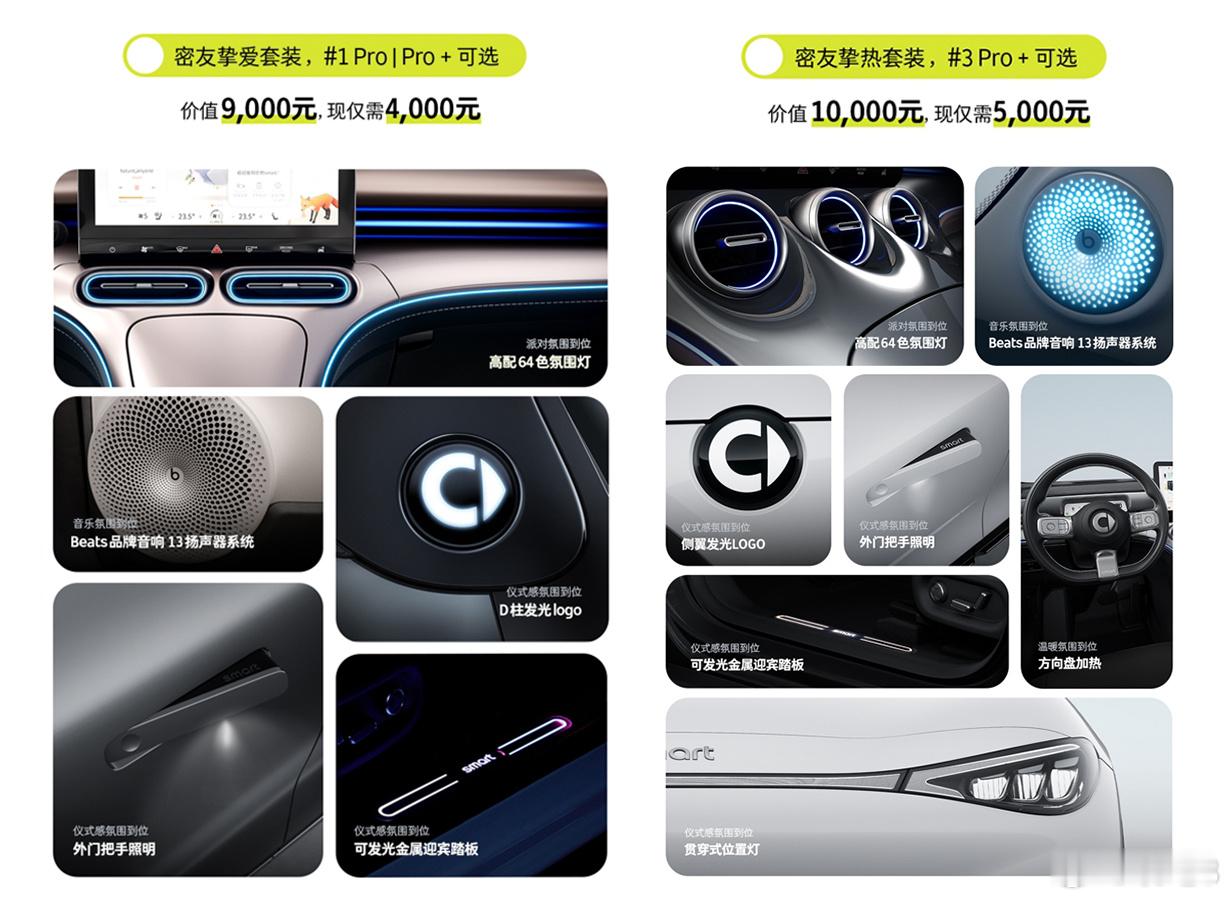 Smart官宣#smart精灵1# 今天迎来2024款的焕新,新车的升级主要集中在内饰设计的优化上,同时Pro和Pro+两个版本还为其所谓“密友挚爱套装”选装包提供了5000元的优惠,选装包包括64色氛围灯、D柱位置的发光logo、车外门把手照明、发光金属迎宾踏板,以及一套13个扬声器的Beats音响系统。#汽车资讯#