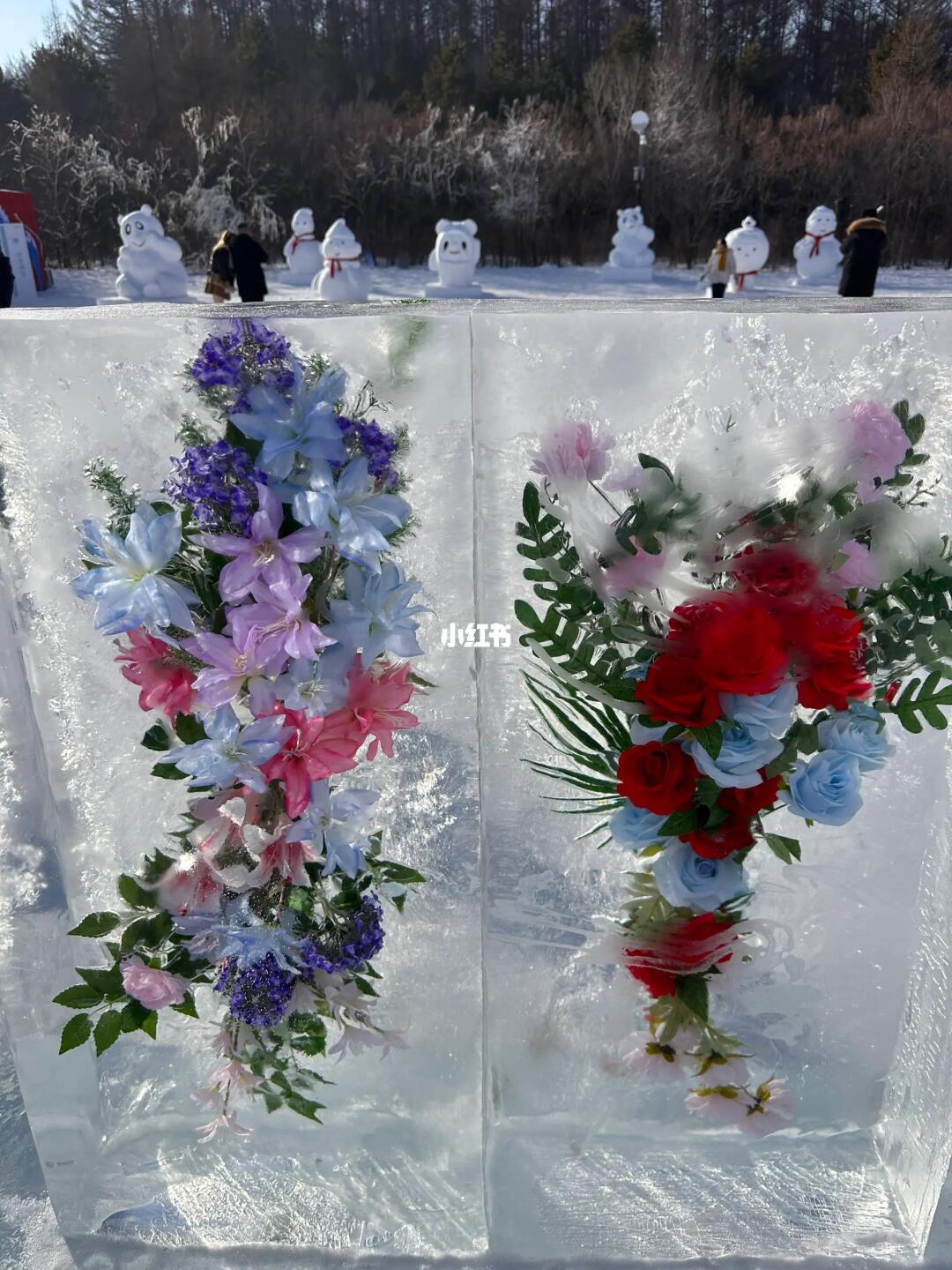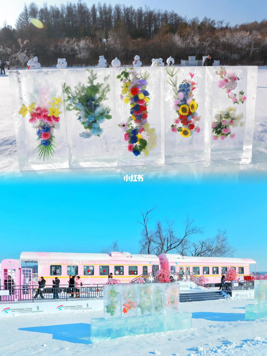 9⃣️“雪世界”冰封花🧊蓝冰的绝对惊艳,超出片,粉色列车雪人,雪雕、滑梯