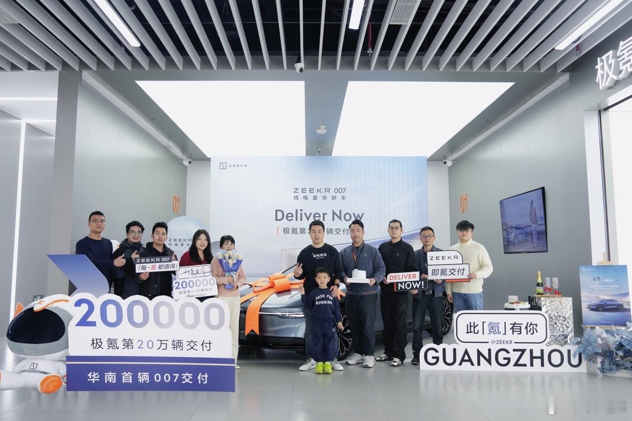 【极氪第20万台新车今日交付】极氪今天在其广州番禺交付中心交付了第20万台极氪新车——一台极氪007。根据统计,极氪达成20万辆新车交付的用时为26个月;另外,极氪007本身的累计订单量也超过了5万单。#极氪007##汽车资讯# #极氪汽车累计交付超20万台#