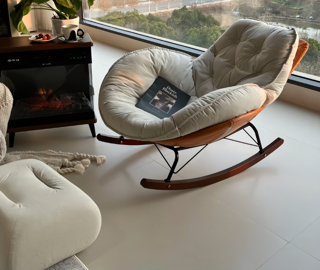 摇摇椅躺在上面很舒服,既能靠着还能摇晃,每天坐在上面觉得很自在、舒适。