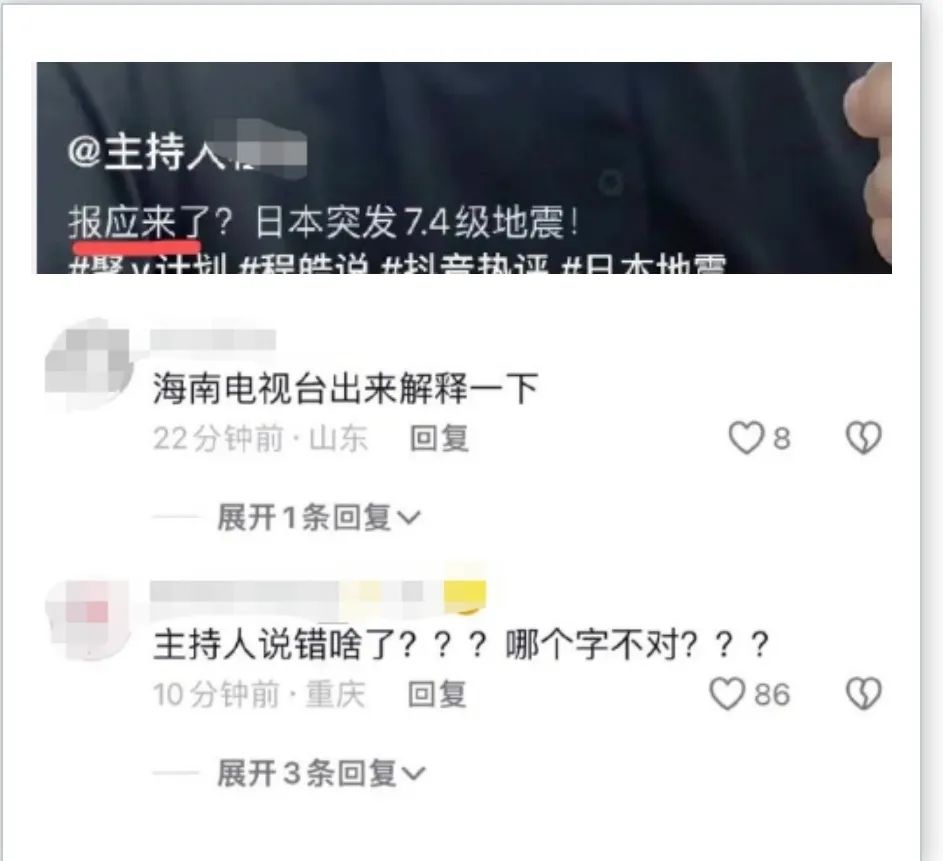 肖程皓的有关言论迅速引来全网高度关注,他所在的海南广电总台第一时间发布通告,以发布不当言论为由,暂停其工作。网友的态度泾渭分明,有的力挺,有的痛批,地震本是天灾,何来“报应”之说,作为公众人物,说出这样的话实属不该。
