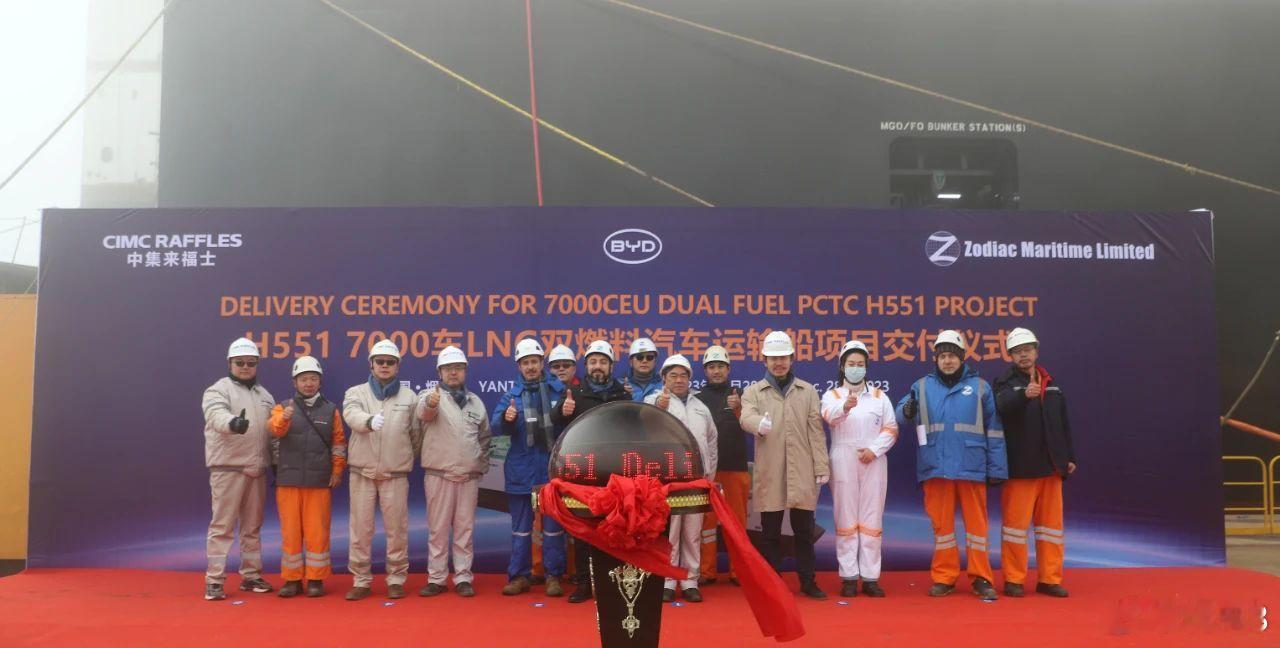 比亚迪首艘汽车运输船已经在1月9日于烟台交付,这艘船设计吃水8.6米,装载量可达
