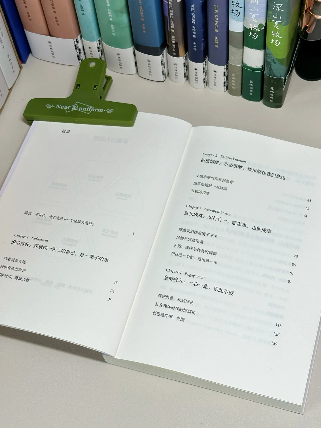 全书分6️⃣个篇章展开,分别对应了“幸福力六边形”中的“悦纳自我”“积极情绪”“自我成就”“全情投入”“培育关系”和“找到意义”。杨澜老师以电影和书籍为引,如同一位温和睿智的老师,用轻柔的语气不徐不疾地为我们传授真知。书中许多观点读来都让我醍醐灌顶,深以为然!