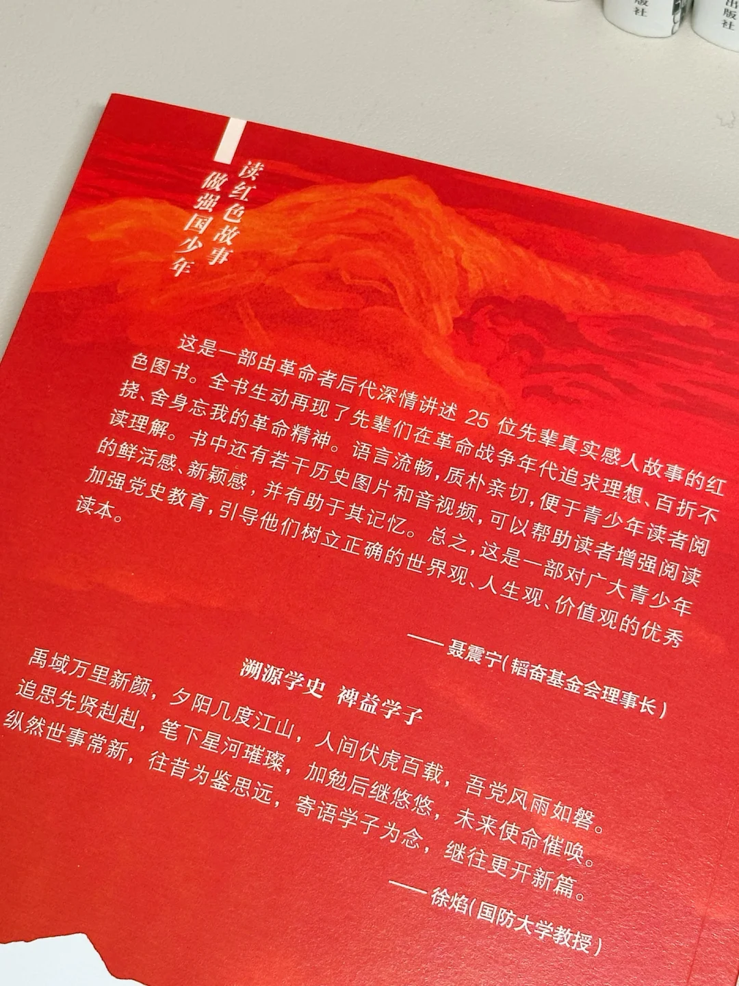 🔖这本书精选了25位ge命先辈的红se故事,分“yu中斗争”“烽火硝烟”“谍 影暗 战”“军民一家”“信念如磐”5辑,以ge命者后代的视角,秉持既对历史负责又对现实负责、既对前人负责又对后人负责的态度,与ge命先辈进行跨越时空的对话,深情讲述了“播火者”马骏、“菊妹子”毛ze建、“龙潭后三杰”之一熊向晖等先辈的英雄故事,以情动人,以小见大,使先辈们的事迹穿越历史长河,给孩子们以启迪和力量。