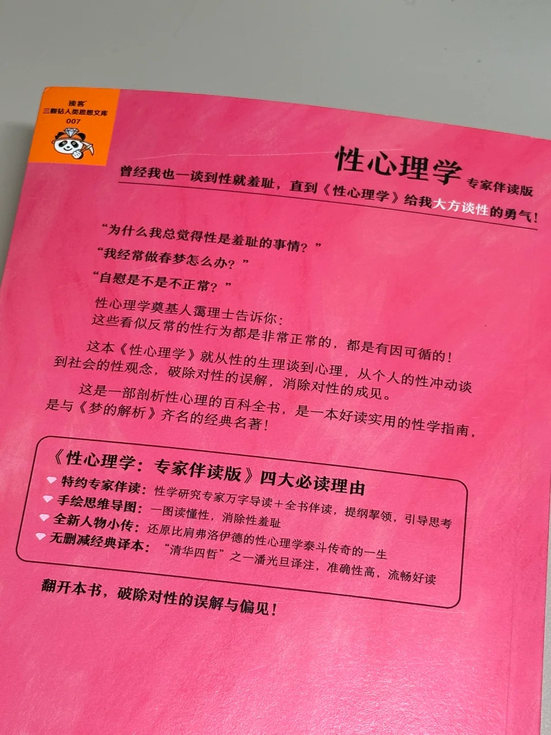 读到这本书前,确实没想过有人会把这些问题作为一个研究课题,甚至写出了这样一本厚厚的书。在书店看到时,甚至觉得翻开它都需要一点勇气。当我读完序言,便深深感觉到,这是一本能打破陈旧观念,重塑正确的性心理,帮助我们提升个人幸福感的好书。