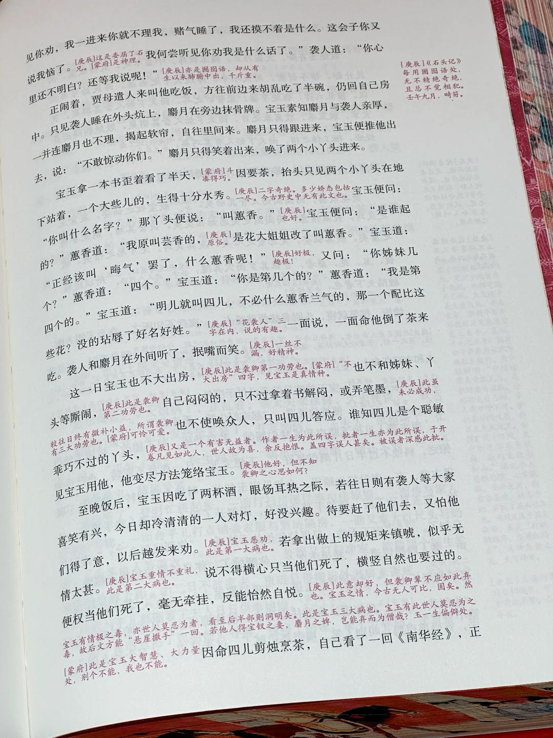 通过研读不难发现,其实脂评本的评者不止脂砚斋一人,署名者竟有十人之多,只是批语最多的是脂砚斋和畸笏叟。他们是两个人,还是一个人的化名?关于这个人,或这两个人的身份,有人说是爱吃胭脂的贾宝玉,即曹雪芹自己;有人说是史湘云的原型,曹雪芹的表妹;有人认为是曹雪芹的堂兄弟,或是他的叔父。众说纷纭,总之是他家族的近亲,也是蕞早接触《红楼梦》原本的人。正因如此,脂砚斋、畸笏叟的评语,为后人研究《红楼梦》提供了诸多有价值的线索。