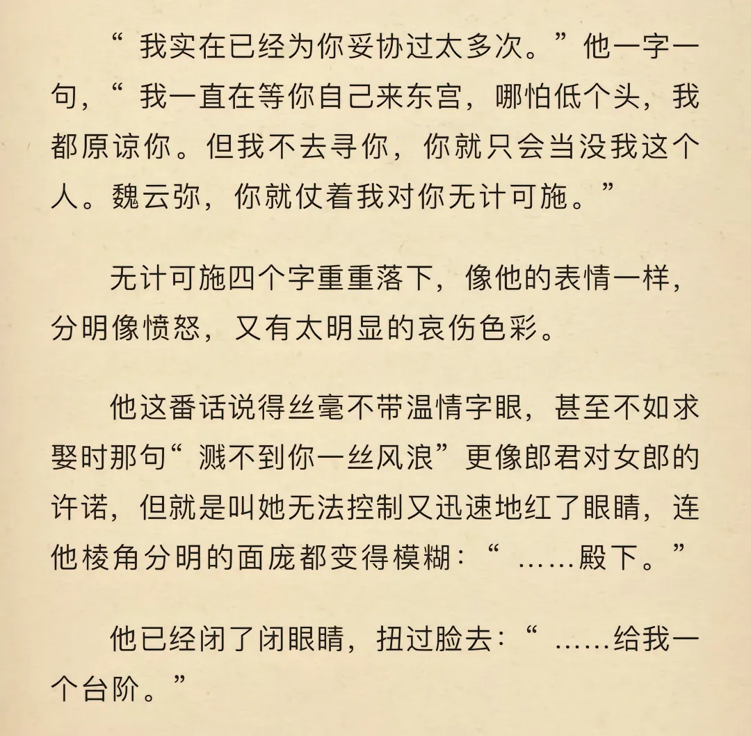 一个想成婚一个一直拒绝,女主有顾忌一直不正面回应男主,男主人设很好,作为太子多次询问能不能娶她,理智又温柔