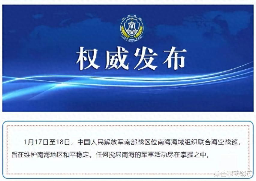 在1月18日夜间22点38分,南部战区突然发布了一份权威公告,这份权威公告的内容非常少,但透露出的信息量却非常大!公告指