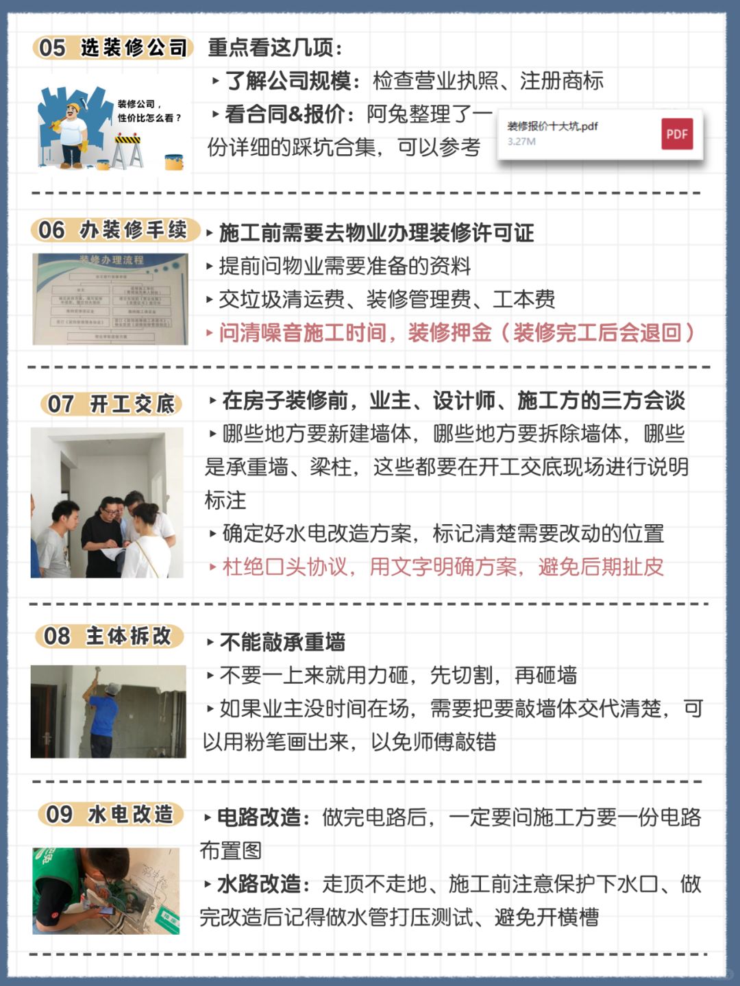 装修流程搞不明白❓ 兔菇凉整理了8️⃣张超详细的装修流程图,做好攻略不踩坑‼ 准备装修的宝子们看完一定要好好收藏哦! . 🌟装修前做足功课,真的能避免很多问题 🔻因图文有限 🐰兔菇凉将完整版《装修流程》《装修报价十大坑》....等1️⃣0️⃣G的装修避坑资料都准备好啦 👉感兴趣的红薯宝宝,评论或S信告诉我吧 🌼最后祝各位宝们都能装修出非常满意的房子哦~