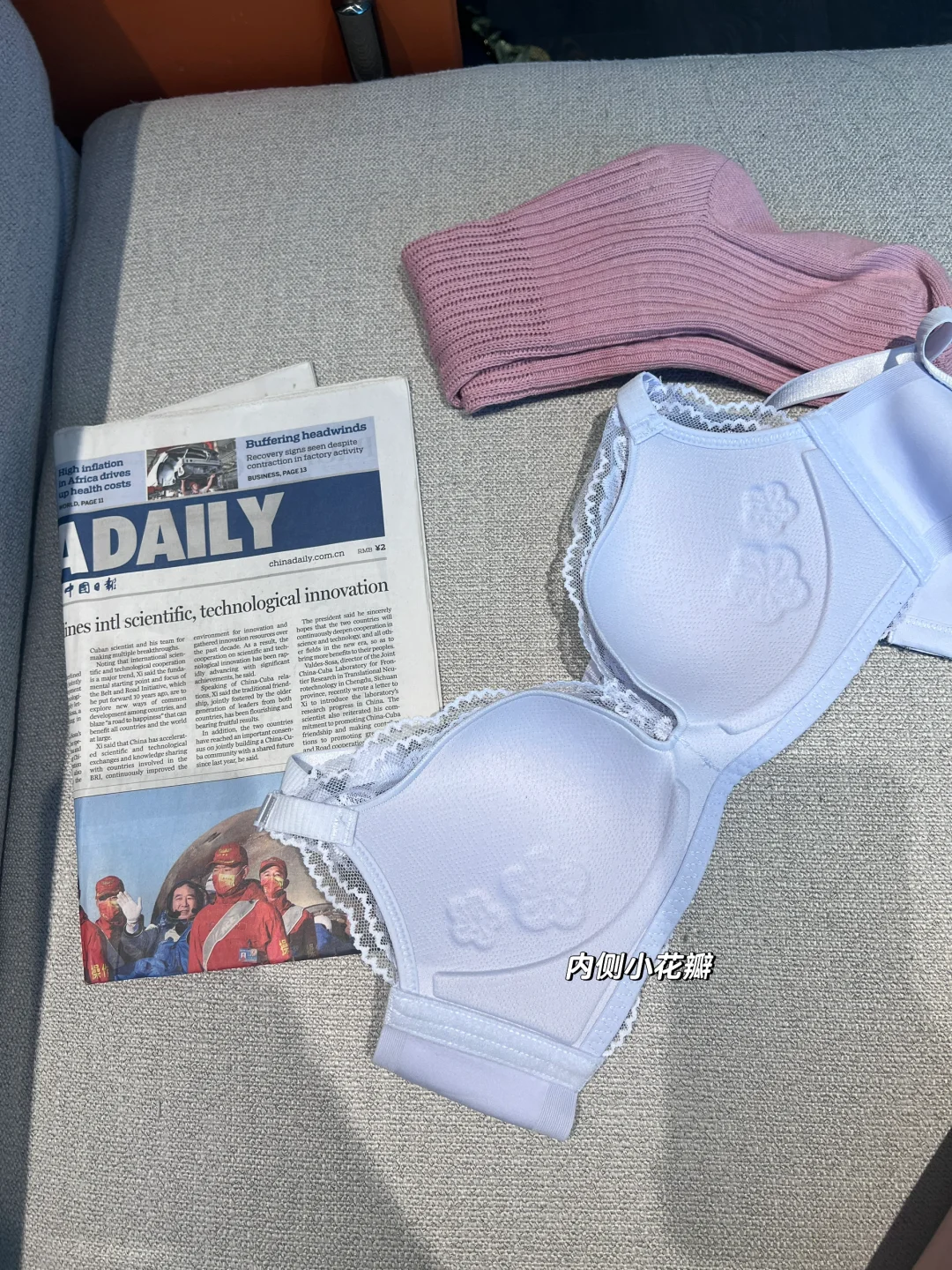 奶fufu粉紫💟蕾丝bra👙搭配白色系毛衫! 整个人感觉就温柔慵懒松弛起来 👙:都市丽人小花心内衣鸢尾花紫色