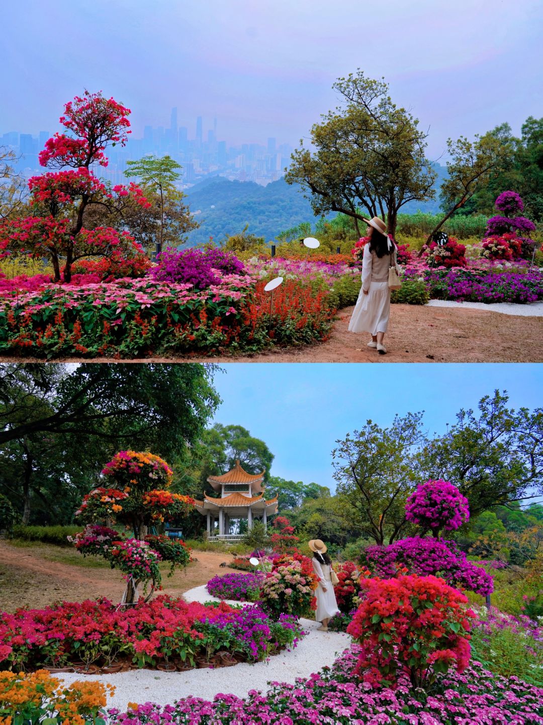 到初秋时节,七彩的簕杜鹃漫山遍野、竞相开放