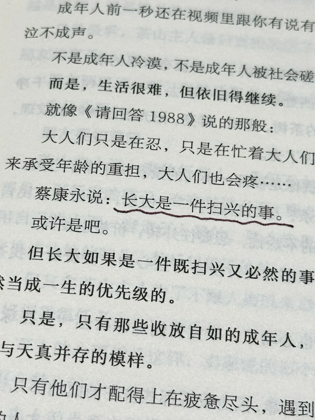 ▫️她说:“让今天的不快乐到此为止,大概是一个人始终有勇气去面对明日之光的重要能力了。学会清理爱而不得的遗憾,清理巅 峰荣耀时的沾沾自喜,清理本该再进一步时的少年懦弱,清理年轻时始终化不开的火热仇恨。”